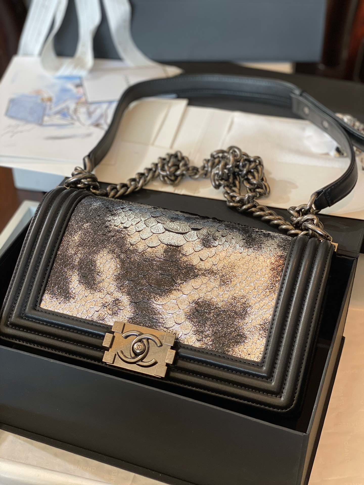 Replica Boy Chanel Bag South African Python Skin with Imported Sheepskin 015
