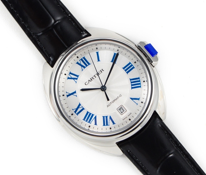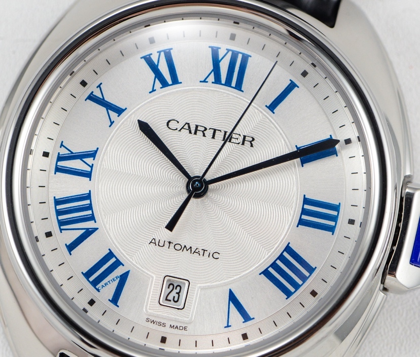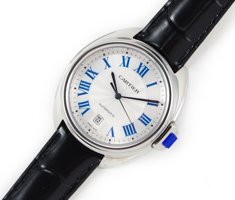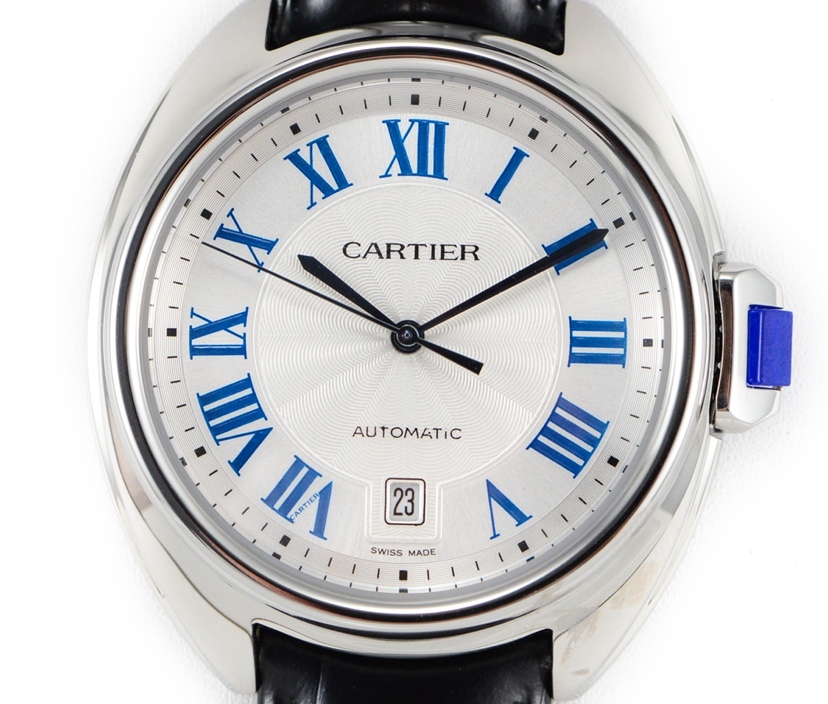 REPLICA CLE DE CARTIER LADIES STAINLESS STEEL CASE LEATHER STRAP