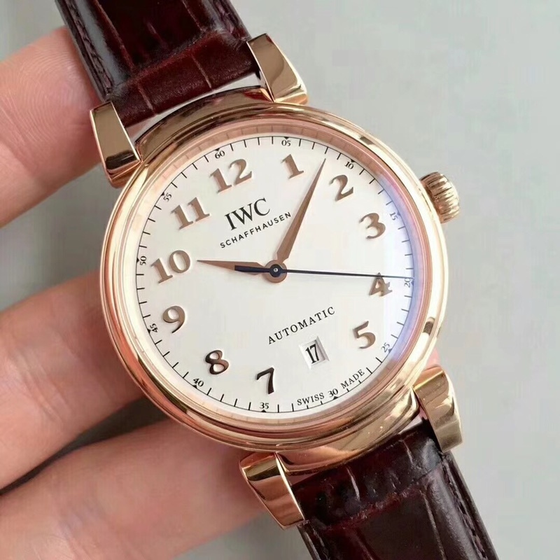 REPLIK IWC DA VINCI AUTOMATISCHE EDELSTAHL ROSE GOLD GEHÄUSE LEDERBAND WEISSES ZIFFERBLATT