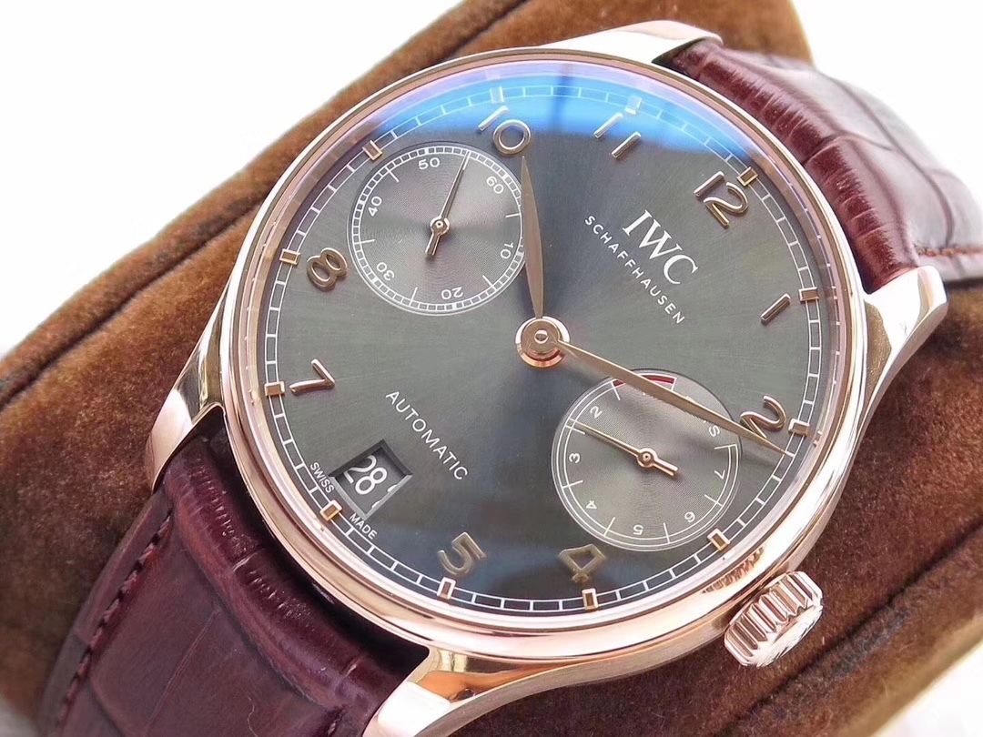 REPLICA IWC PORTUGIESER LEATHER STRAP STAINLESS STEEL ROSE GOLD CASE
