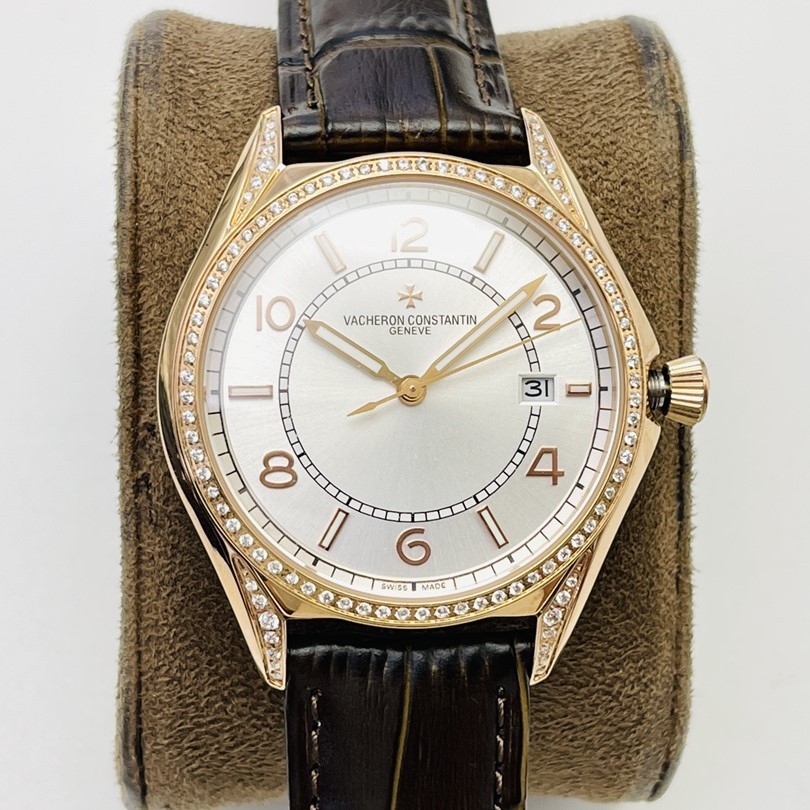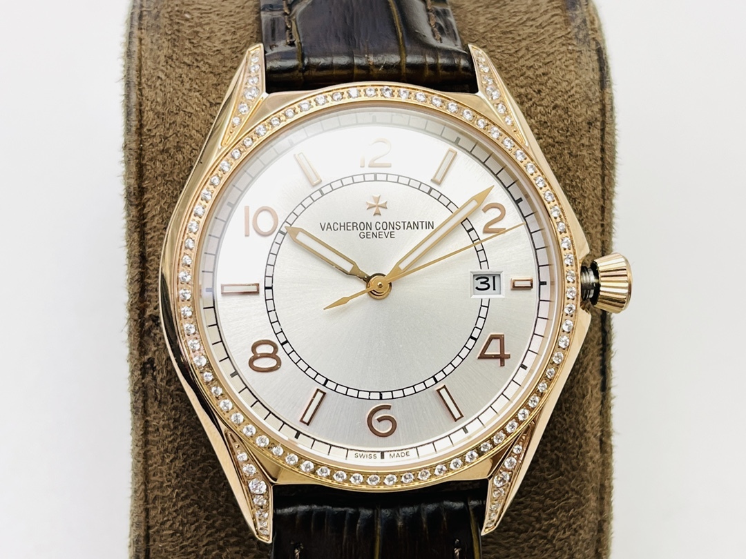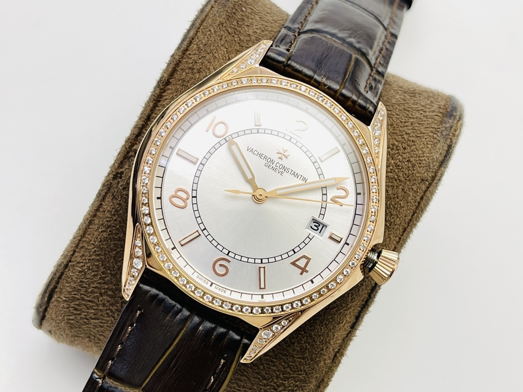 REPLIK VACHERON CONSTANTIN FIFTYSIX EDELSTAHL DIAMANTGEHÄUSE LEDERBAND