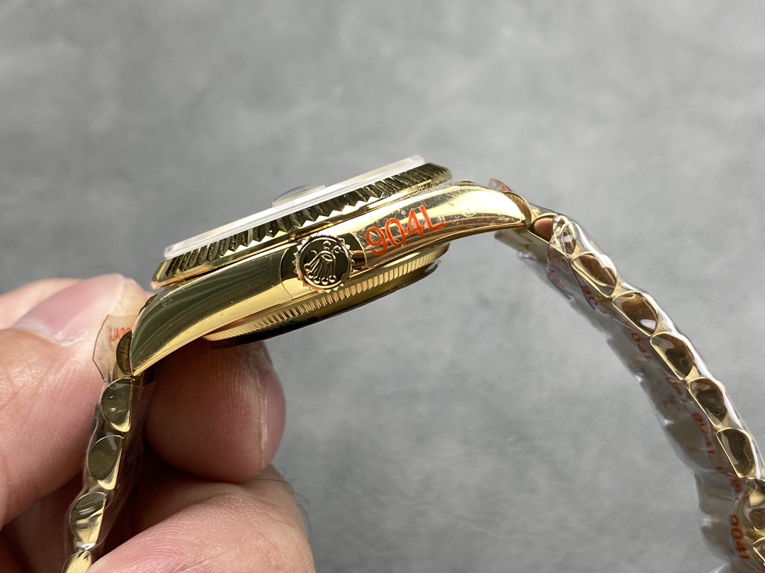 Rolex Day-Date 118238 Champagne Dial 36mm Unisex Replica Watch.36mm yellow gold case with a yellow gold rolex president bracelet. Fixed fluted yellow gold bezel. Champagne dial with yellow gold-tone hands and Roman numeral hour markers. Minute markers around the outer rim.Date display at 3 o’clock; day display at 12 o’clock.Scratch resistant sapphire crystal. Screw down crown. Solid case back.