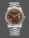 Rolex Day-Date 118239 Chocolate Brown Dial 36mm Unisex Replica Watch. 36mm white gold case with white gold fluted bezel.Chocolate Brown Dial with Roman Numerals, Date display at 3 o’clock position and day display at 12 o’clock position with a cyclops magnifying lens. White gold Oyster bracelet, hidden deployant clasp. Sapphire crystal. White gold case back.
