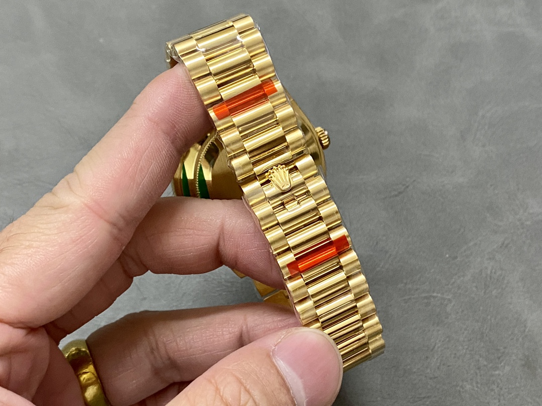 Rolex Day-Date 128238 Fluted Bezel Champagne Index Dial 36MM Unisex Replica Watch,36mm yellow gold case, screw-down back, screw-down crown with twinlock double waterproofness system, fluted bezel,Champagne Index Dial with Index Hour Markers.Date window displayed under cyclops lens at 3 o’clock. Day window displayed at 12 o’clock.Instantaneous day and date setting.Yellow gold President bracelet with semi-circular three-piece links, concealed folding Crownclasp buckle.