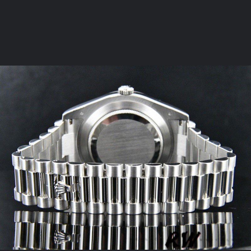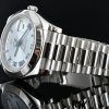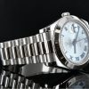 Rolex Day-Date 218206 Ice Blue Dial Platinum 41MM Mens Replica Watch,has a Platinum 41 mm Round Case with Screw Down Crown and a Platinum Bezel.Scratch resistant sapphire crystal with Cyclops magnifier.Ice Blue dial with Roman Numerals hour markers.Date Window Displayed at 3 O’Clock,Day Window Displayed at 12 O’Clock,Platinum President Bracelet will look great on your wrist.