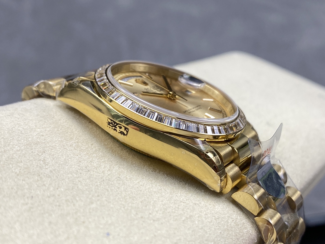 Rolex Day Date 36 Yellow Gold Champagne Dial Diamond Bezel m128348rbr 0026