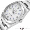 Rolex Oyster Perpetual Air-King 114200 Silver Dial 34mm Unisex replica watch. 34MM Stainless steel case in diameter.Smooth Fixed domed stainless steel bezel.Silver dial with applied Arabic numerals and blue luminous baton hour markers.Arabic numerals mark the 3,6 and 9 o’clock positions.Minute markers around the outer rim.Scratch resistant sapphire crystal.Screw down crown.Solid case back. Stainless steel oyster bracelet with fold over clasp.