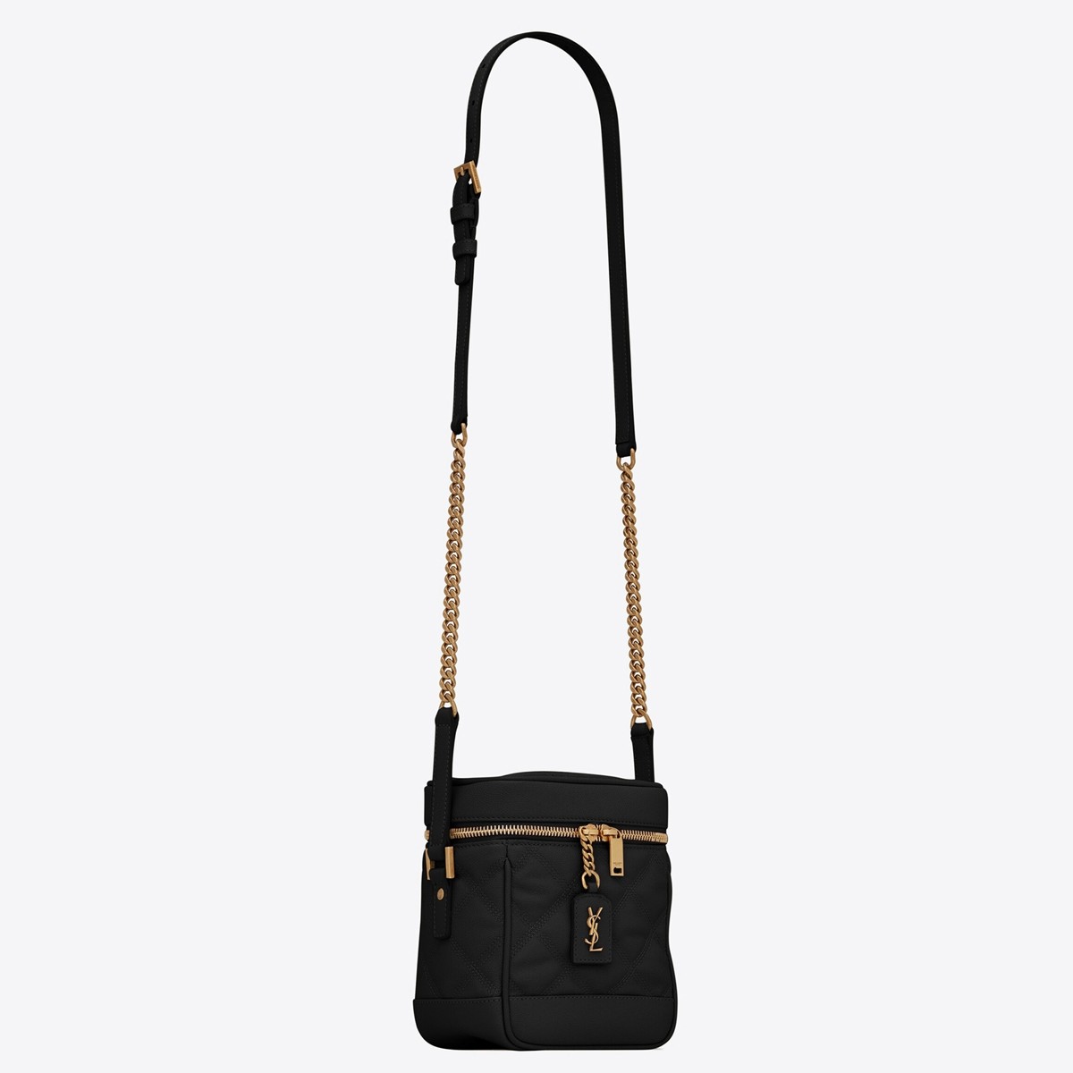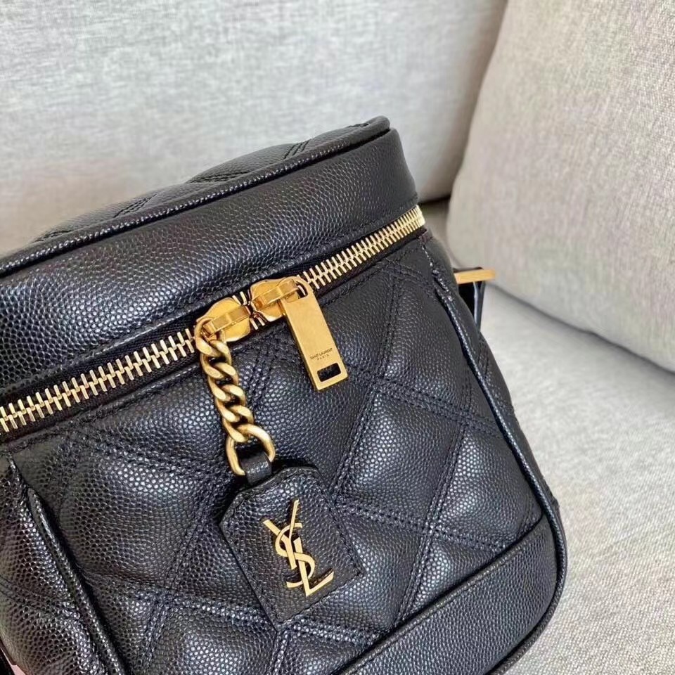 Saint Laurent 80er Jahre Vanity Bag In schwarz gesteppt genarbtem Leder