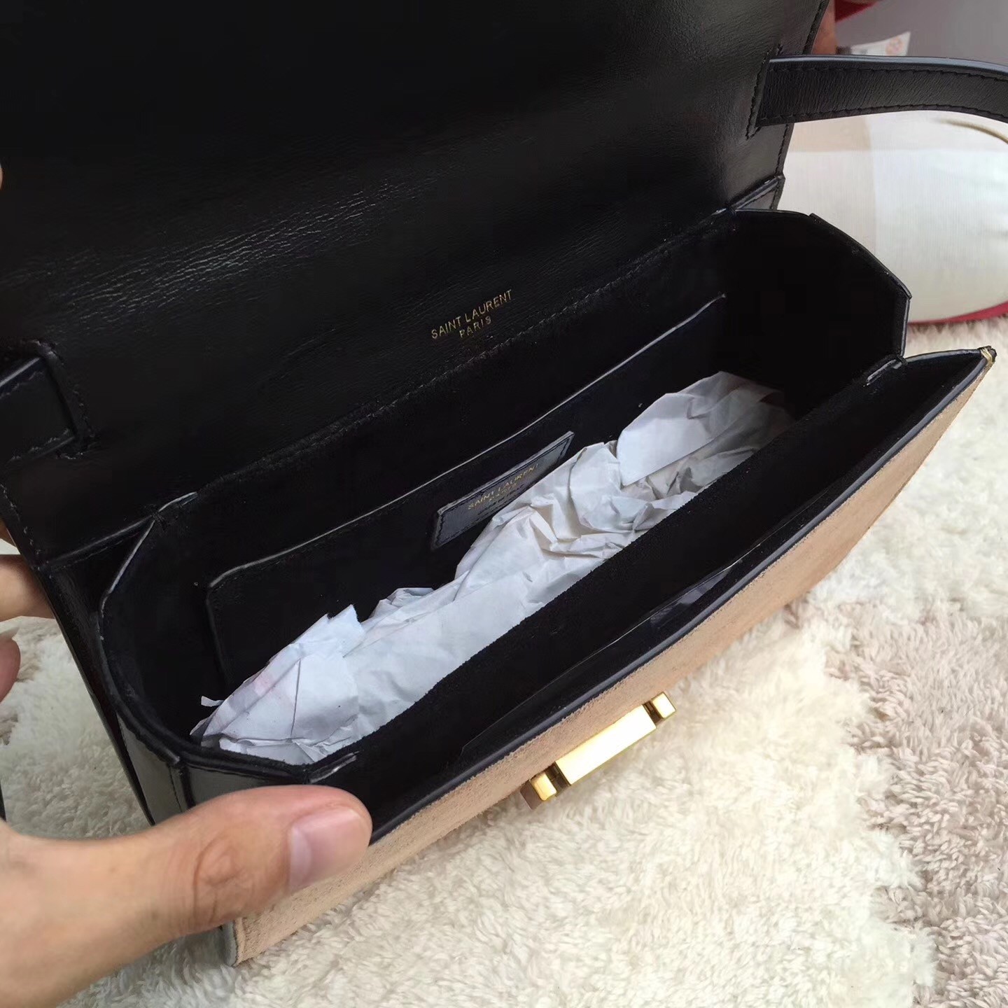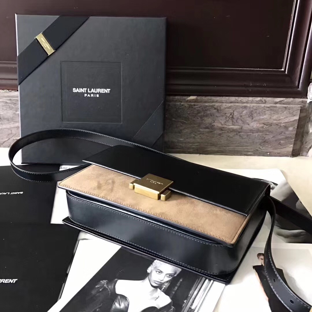 Saint Laurent Medium Bellechasse Bag In Black Leather And Taupe Suede