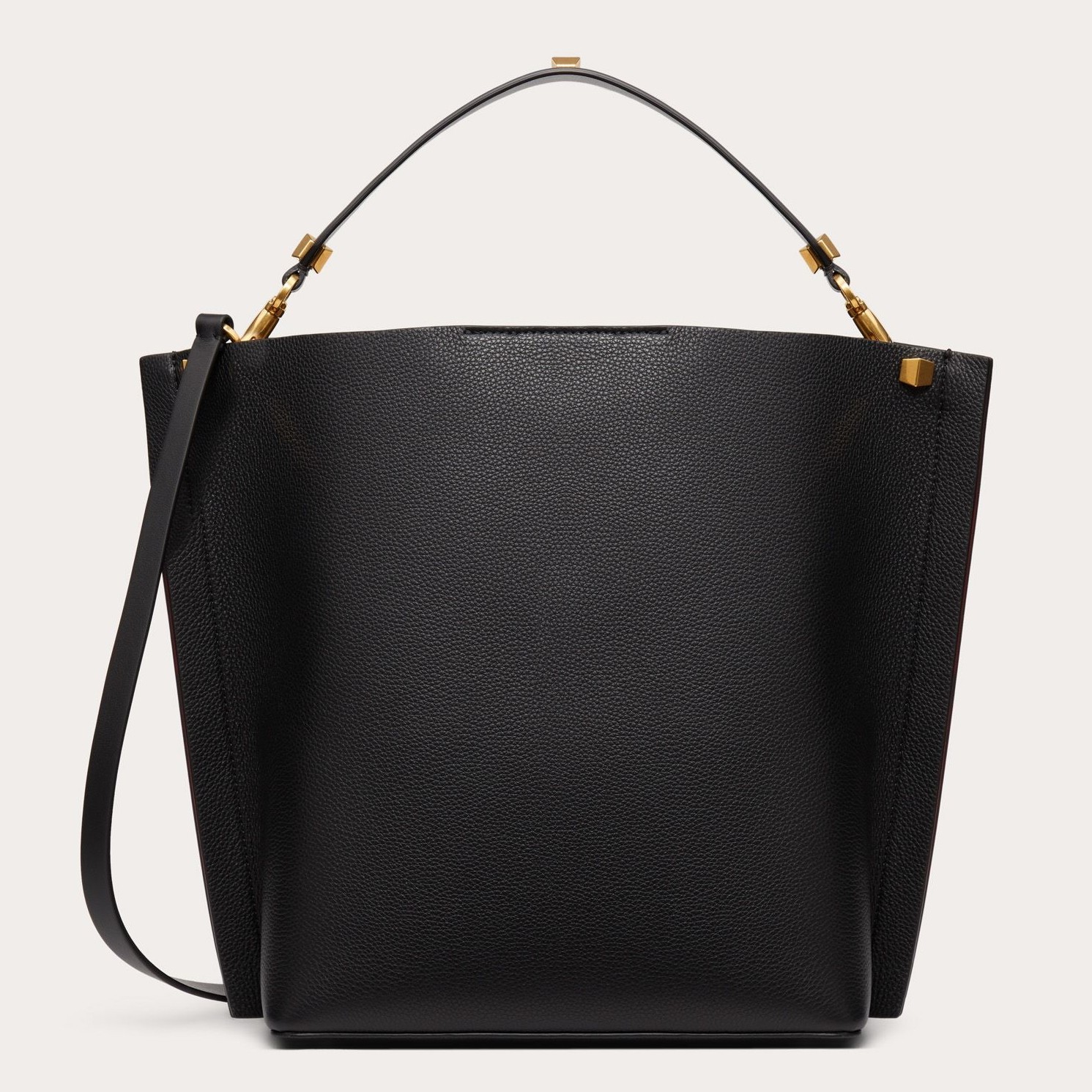 With subtle red details to the sides, the Valentino Garavani Escape hobo bag is imagined in exquisite grained leather. Crafted in Italy, the textured profile is decorated with luxurious gold-tone accents and the label’s signature brass VRING logo. The timeless accessory boasts a spacious interior, which includes a practical pouch where you can store and effortlessly reach for your everyday essentials.