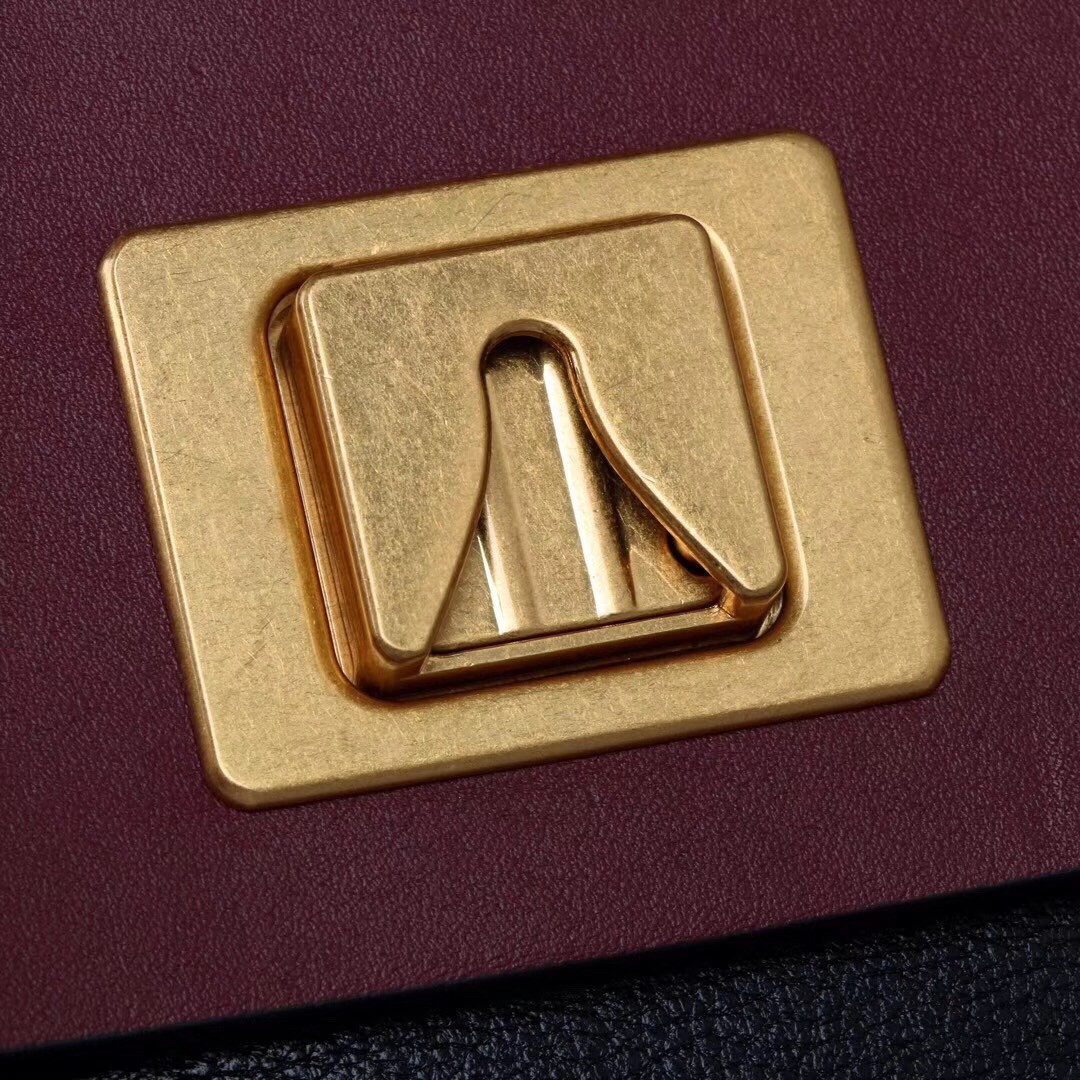 – Antique brass logo and hardware