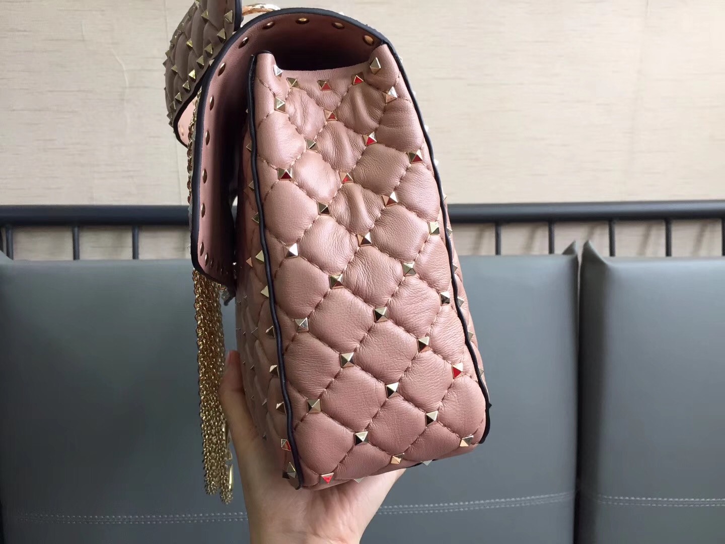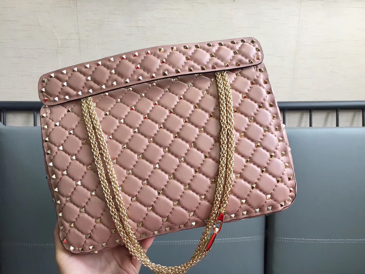 Valentino Große Rockstud Spike Tasche In Poudre Nappaleder