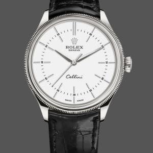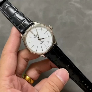 Rolex Cellini Time 50505 Black Leather Strap White Dial 39mm Mens Replica Watch