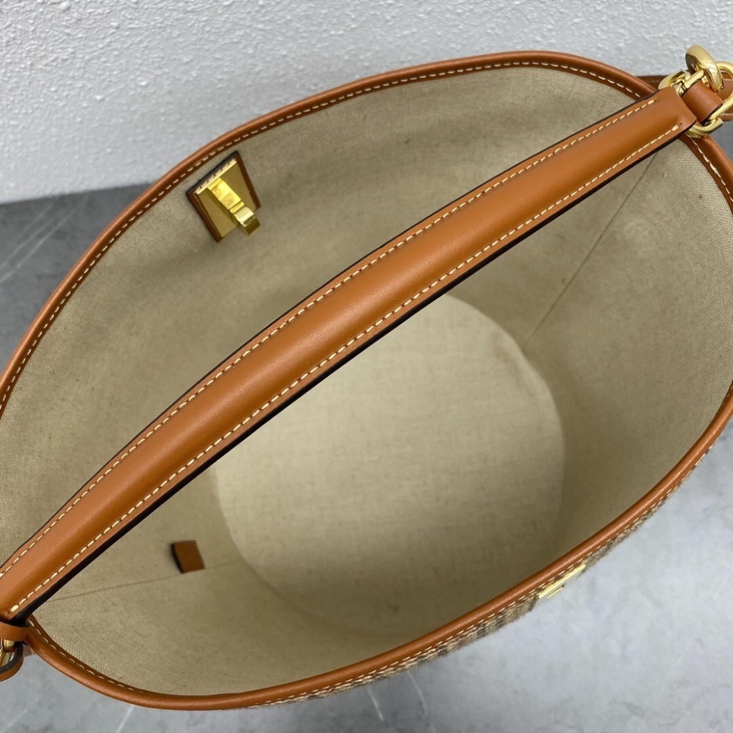 Aparte del ya icónico cierre giratorio de Celine 16, el Bucket se parece muy poco a la forma estructurada original, lo que permite a esta nueva silueta dirigirse a consumidores que quizá no sean fans originales de la línea 16. El bolso Bucket, sencillo pero elegante, es elegante pero clásico y tiene el tamaño perfecto para el día a día.