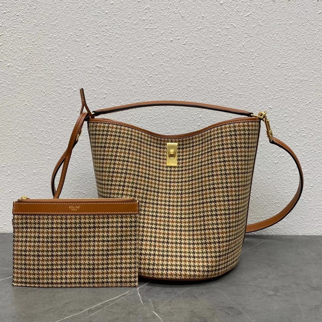 Bolso Celine Bucket 16 en tweed y piel de becerro