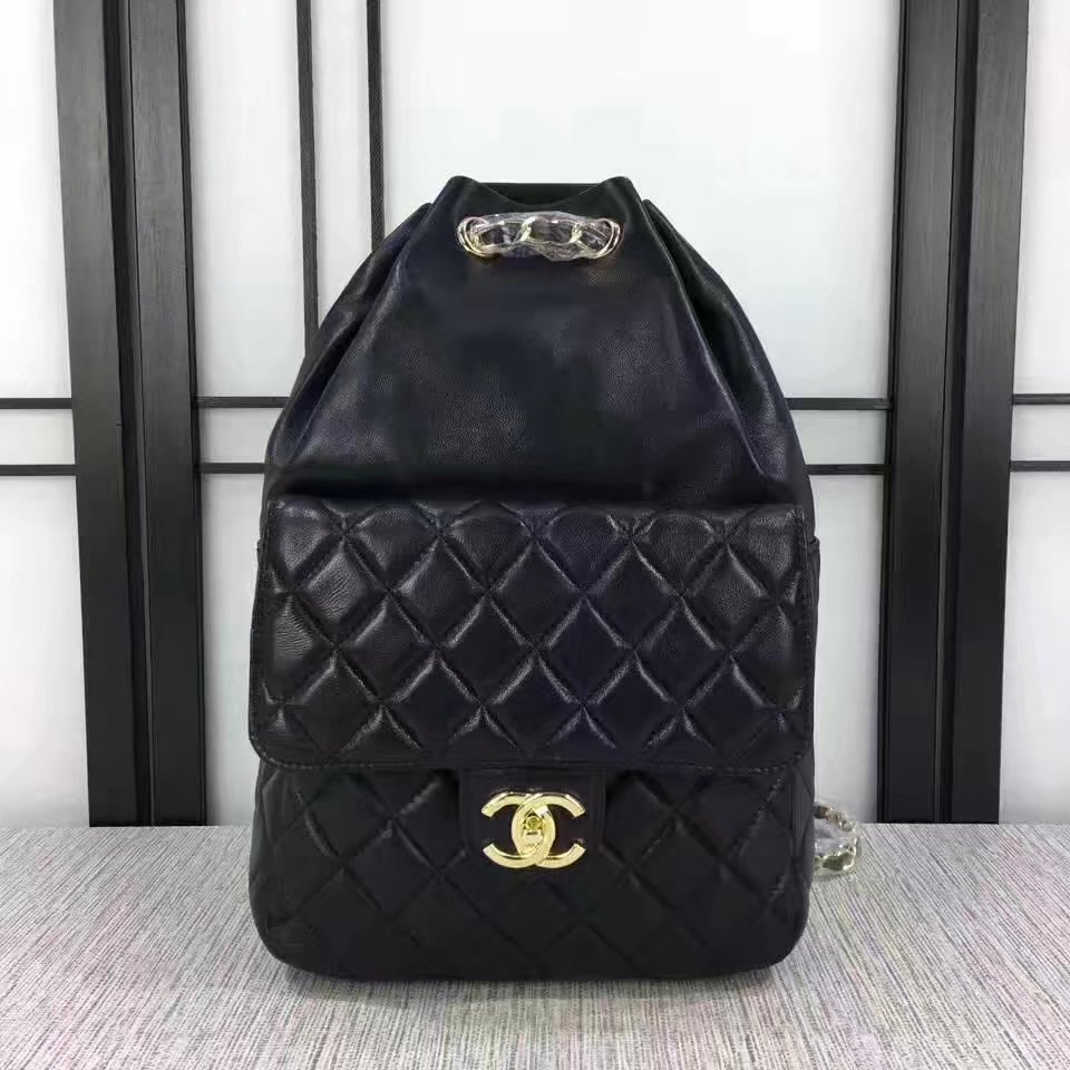 Chanel 7013 Backpack Balck Leather Gold