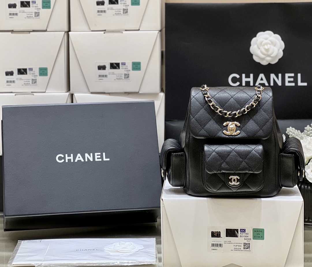Chanle 23K Duma Small Backpack Black Caviar