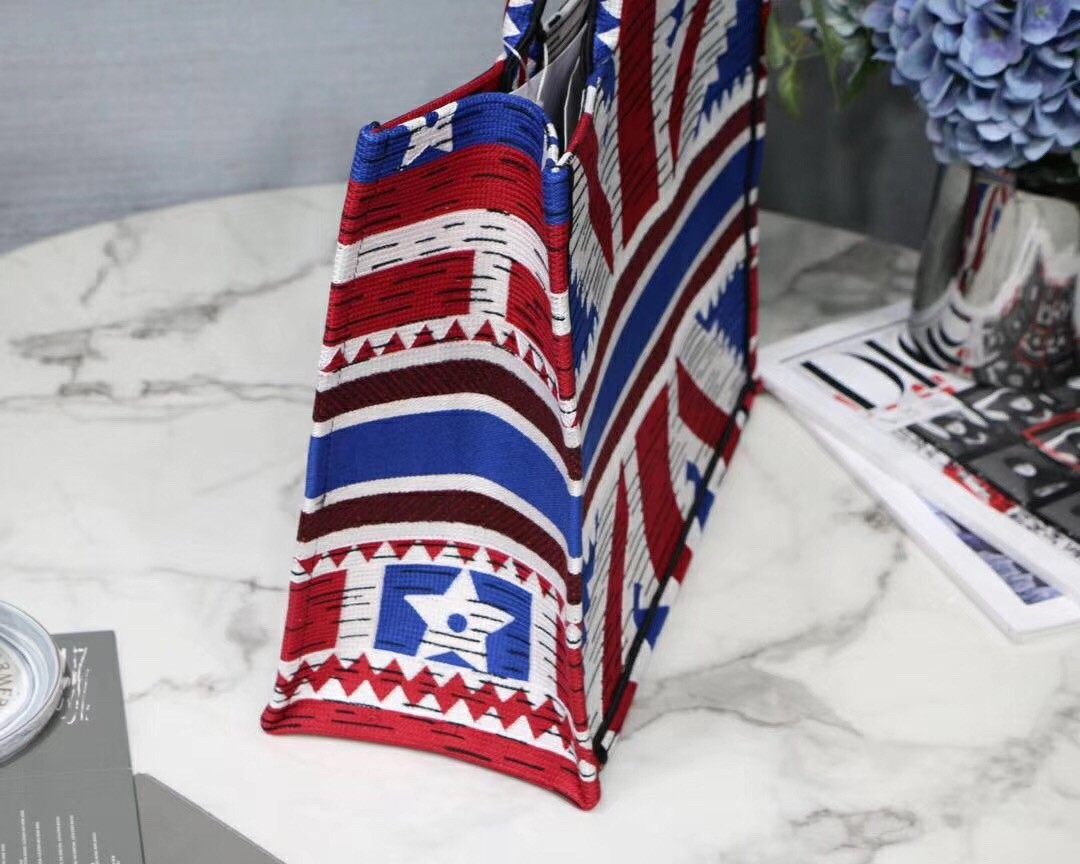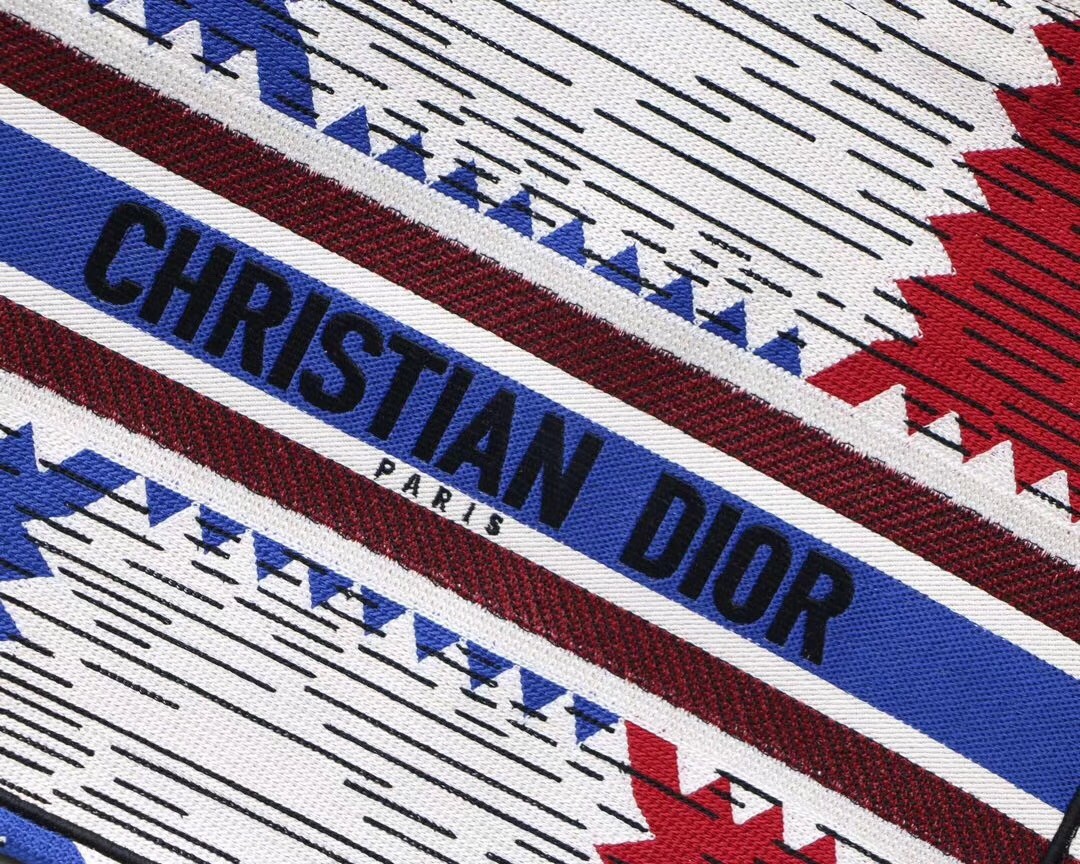 Dior Book Tote Bag In French Flag Embroidered Canvas