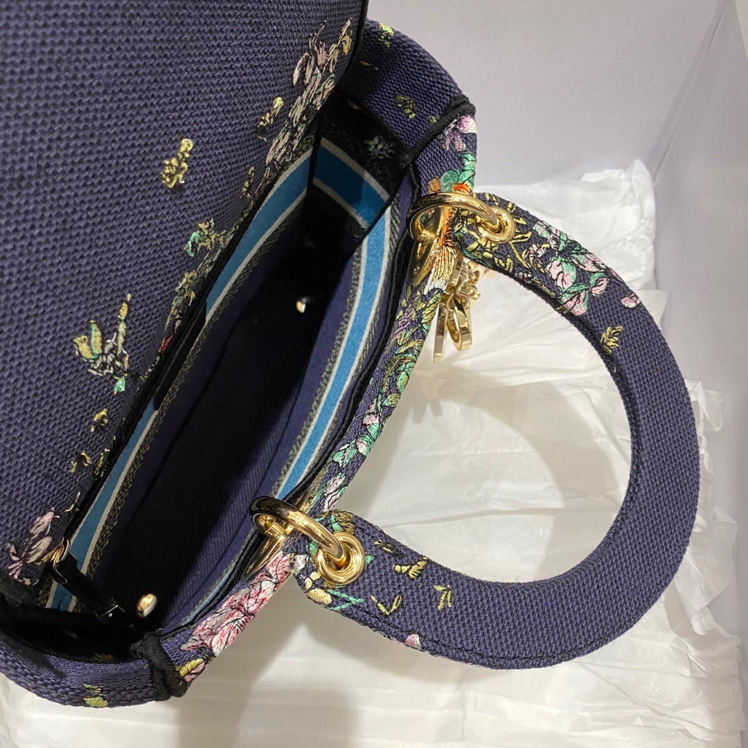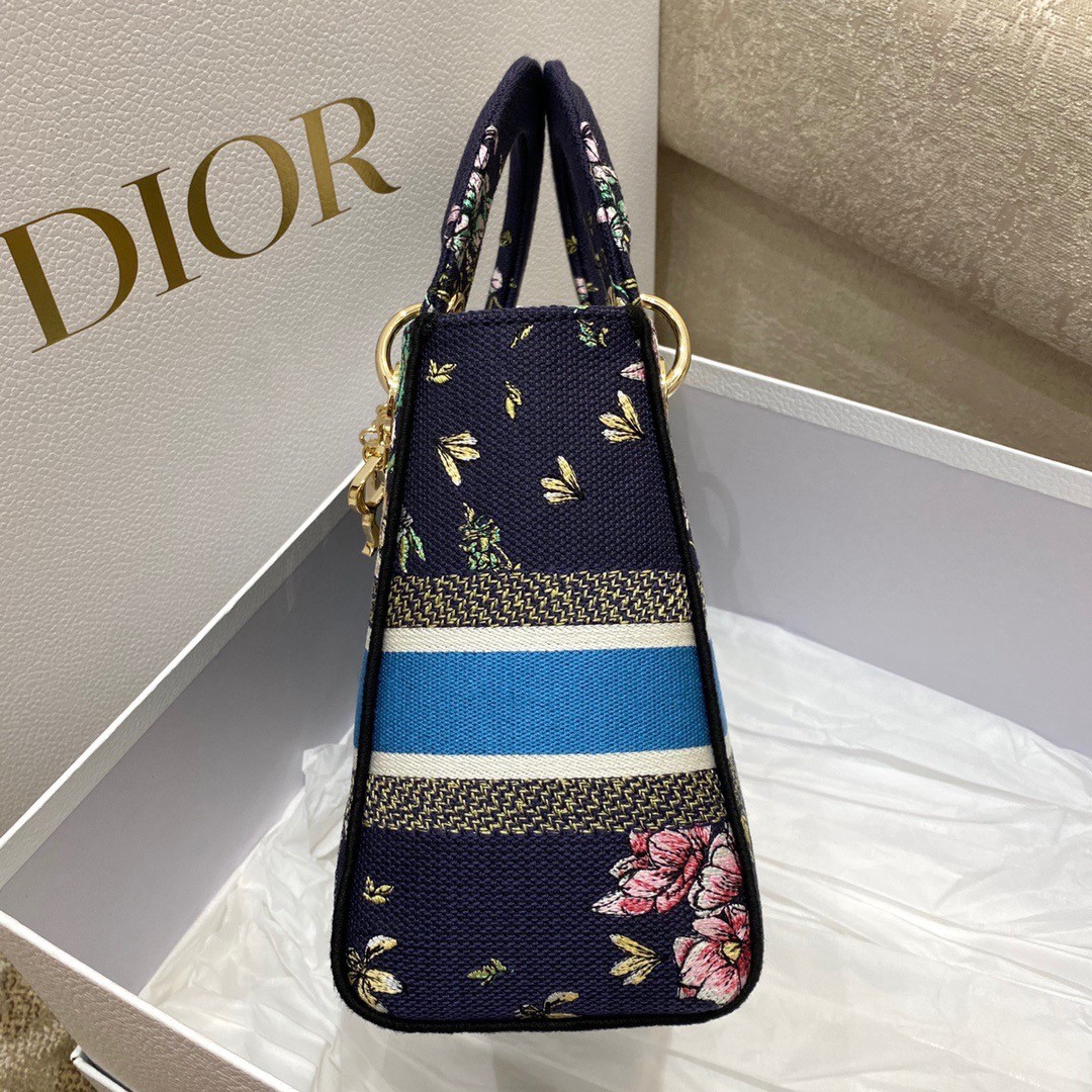 Dior Medium Lady D-Lite Bag In Blue D-Constellation Embroidery