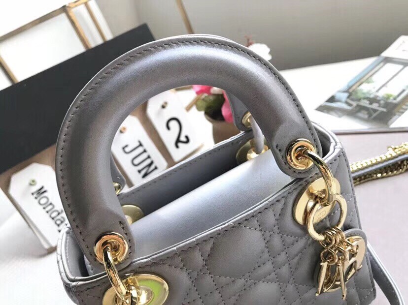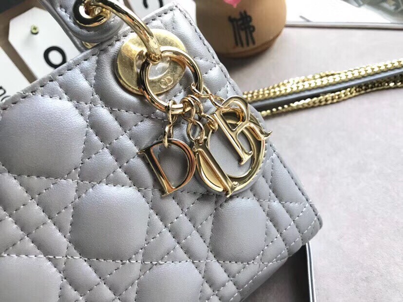 Dior Mini Lady Dior Bag In Grey Pearly Lambskin