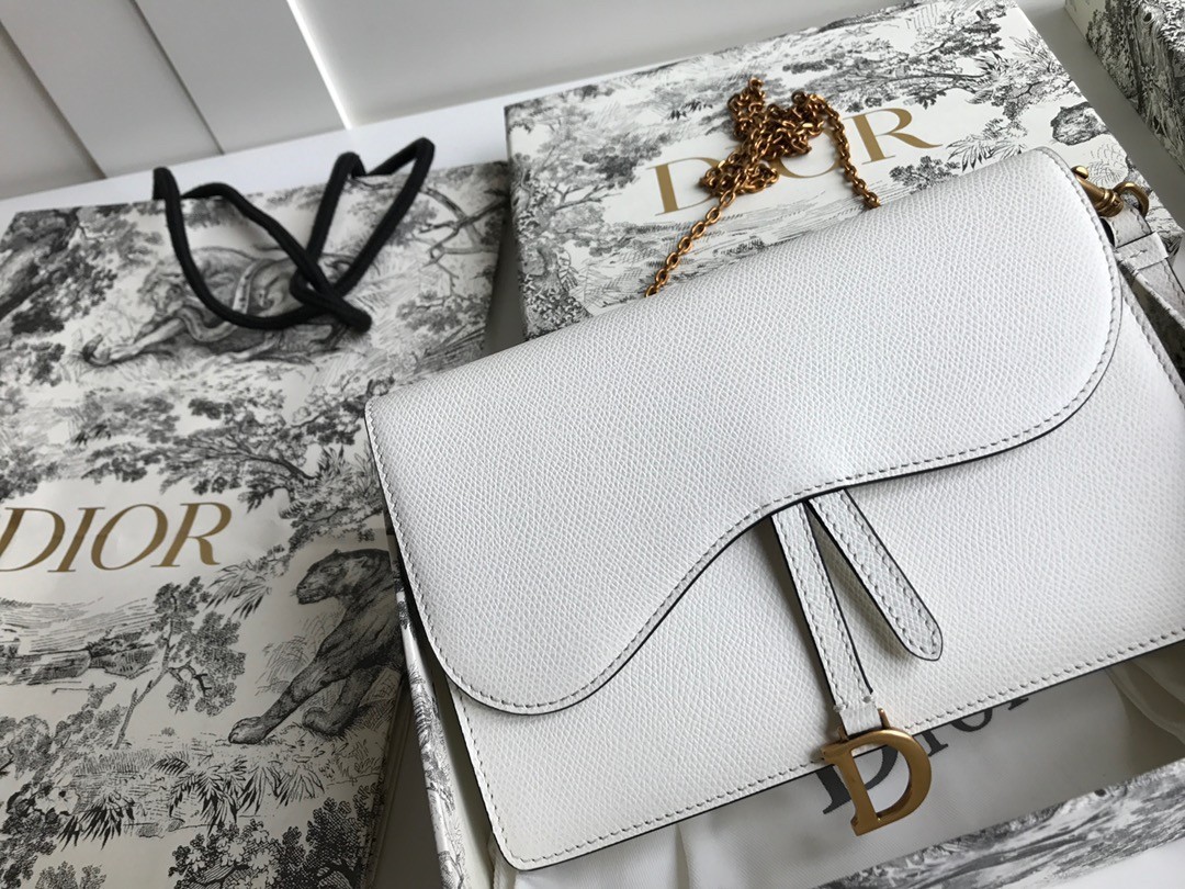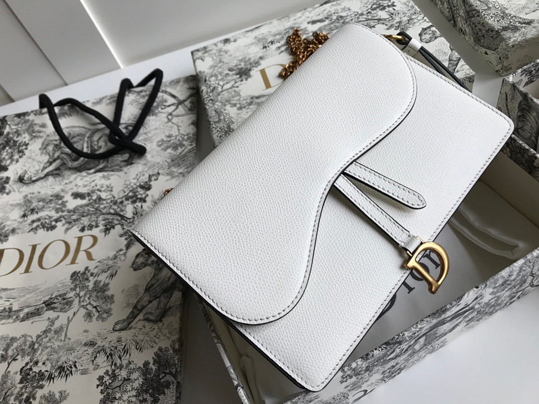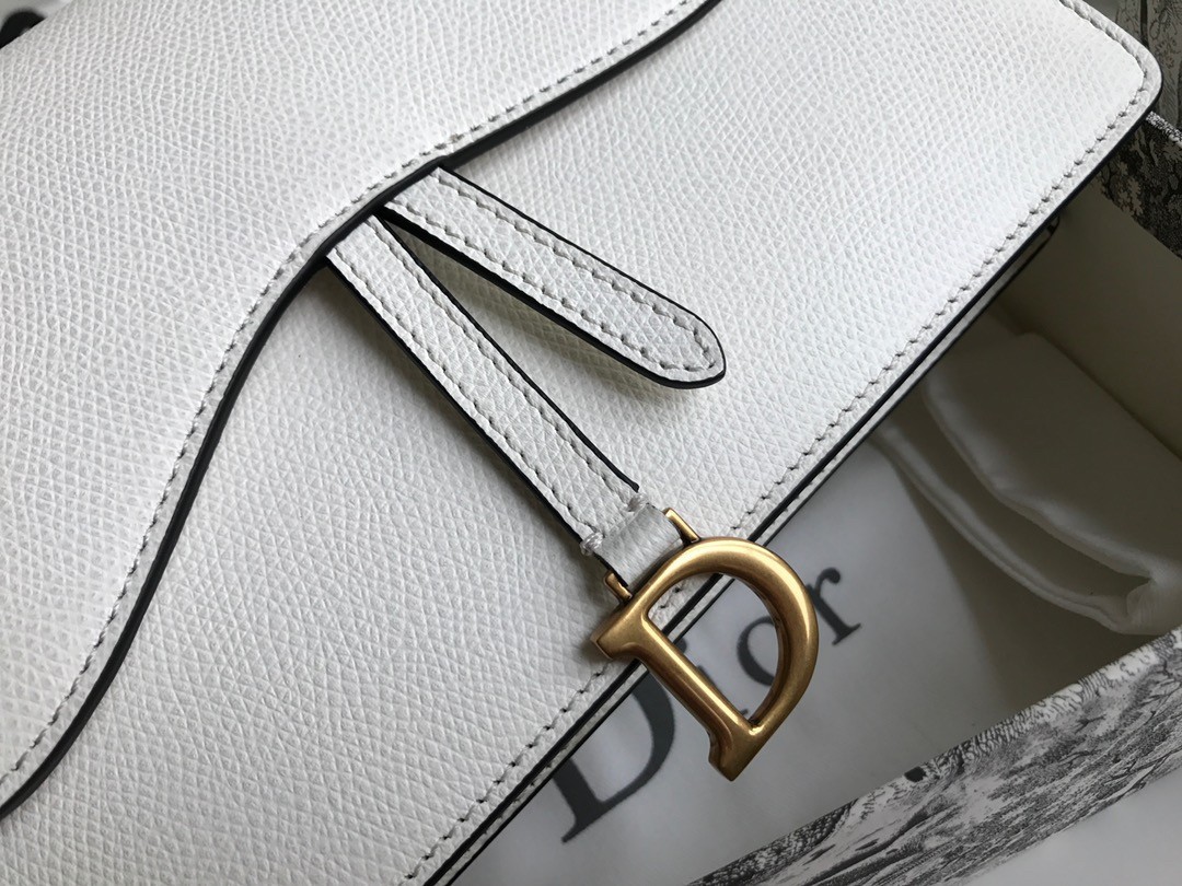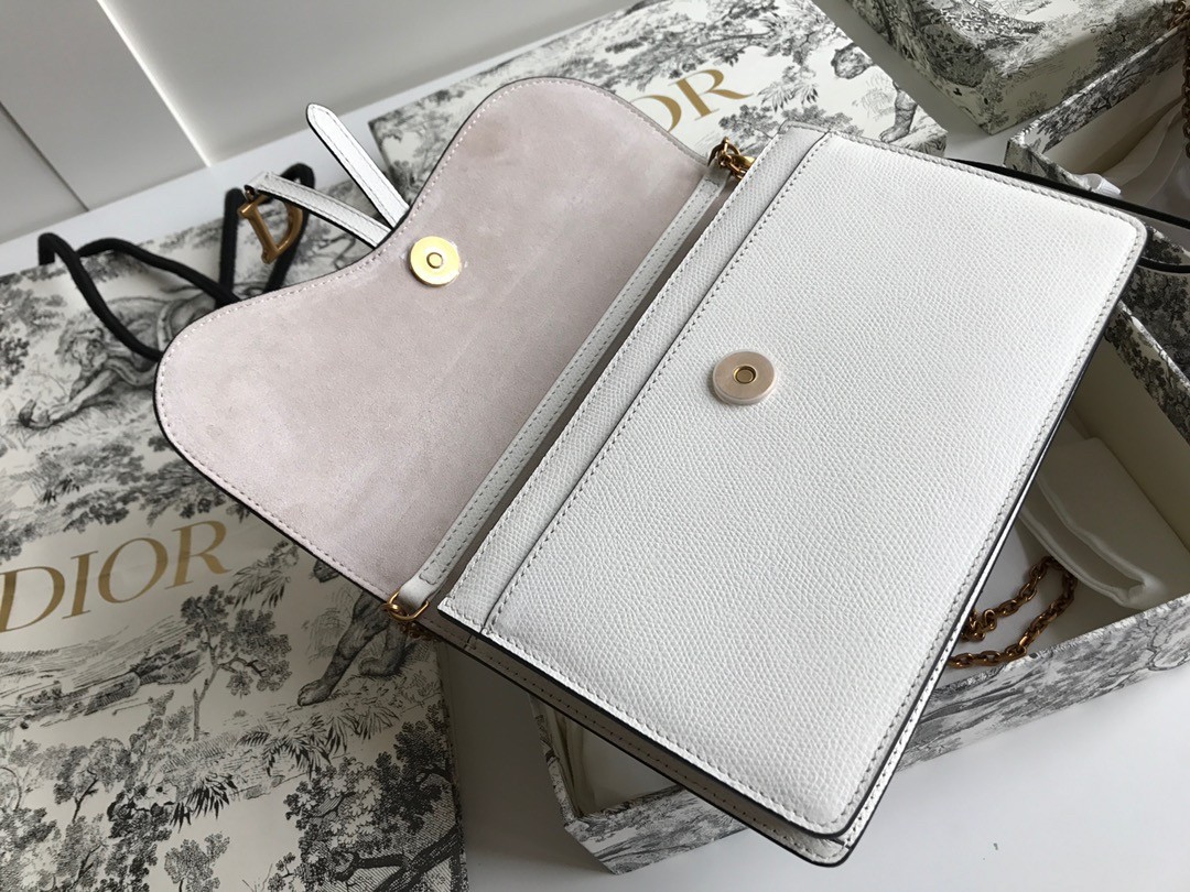 Dior Saddle Pouch In White Grained Calskin