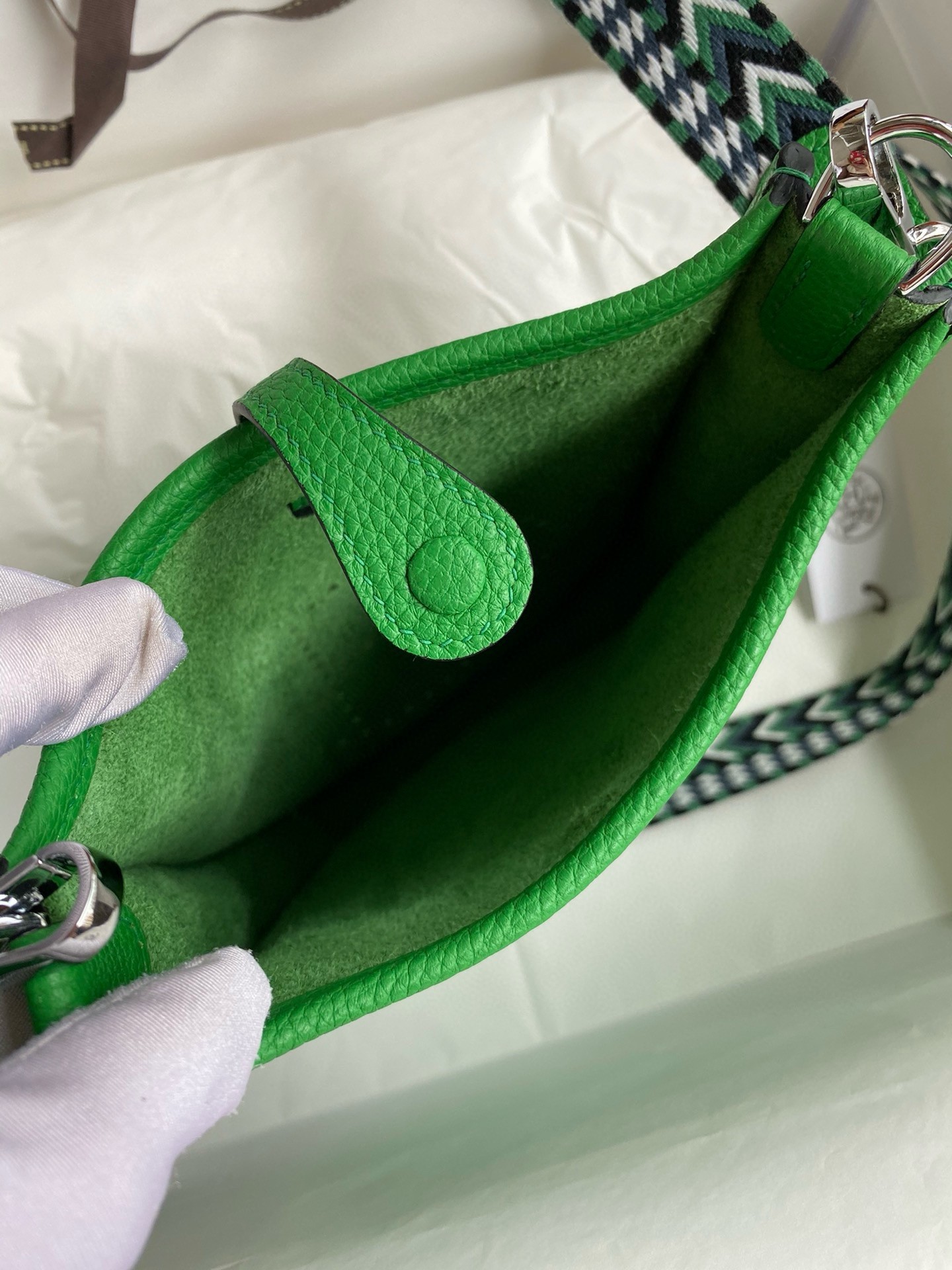 Sé el primero en opinar "Hermes Evelyne Mini Handmade Bag in Bamboo Clemence Leather"