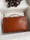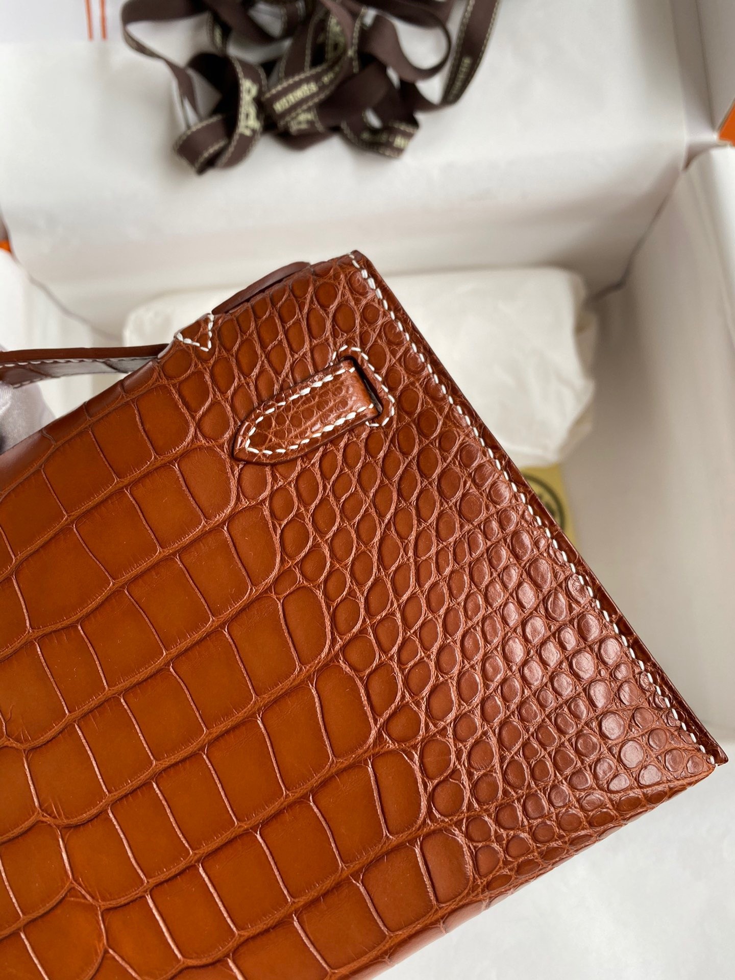 Hermes Kelly Pochette Handmade Bag In Gold Matte Alligator Leather