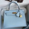 Hermes Kelly Sellier 25 Handmade Bag In Celeste Epsom Calfskin