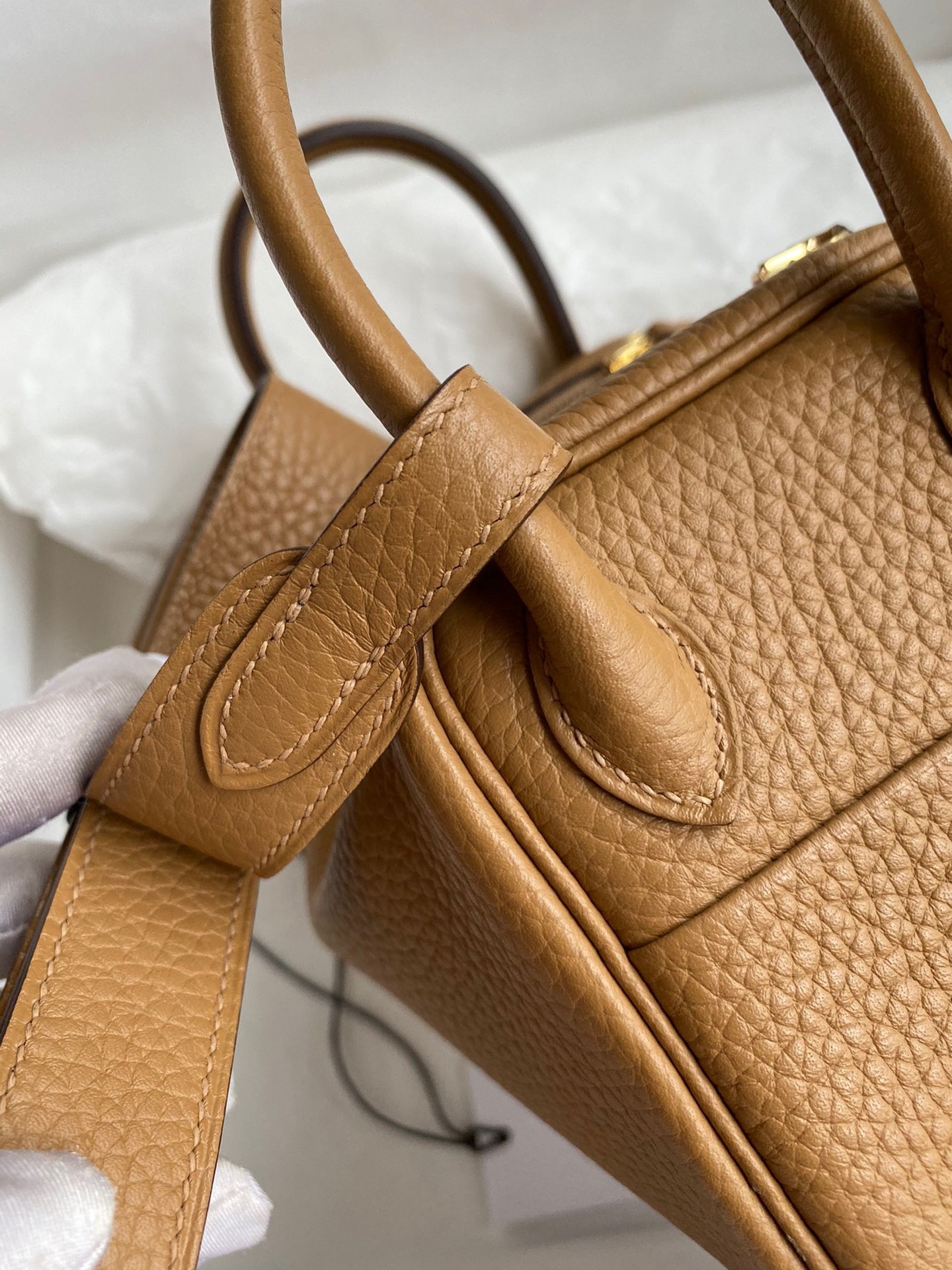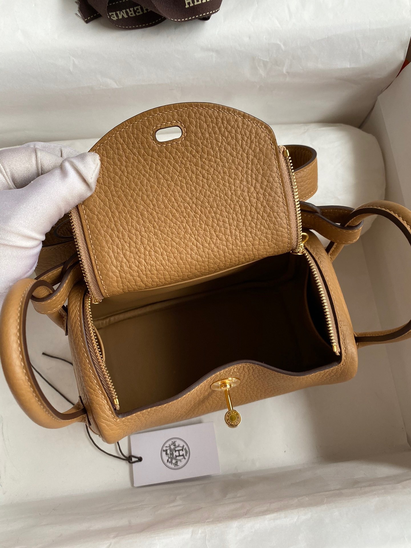 Hermes Mini Lindy Handmade Bag In Biscuit Clemence Leather