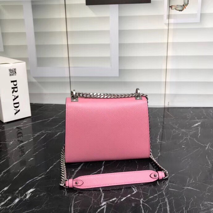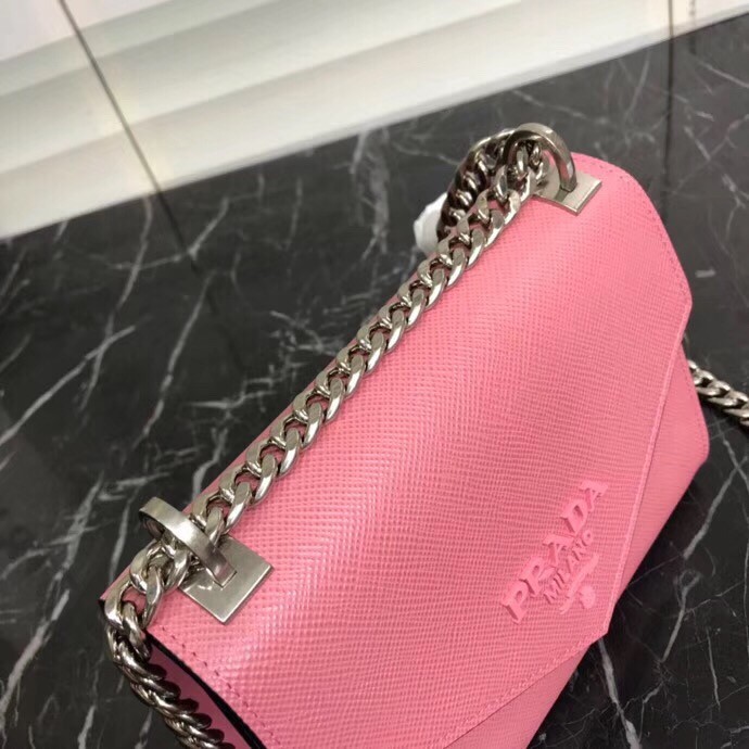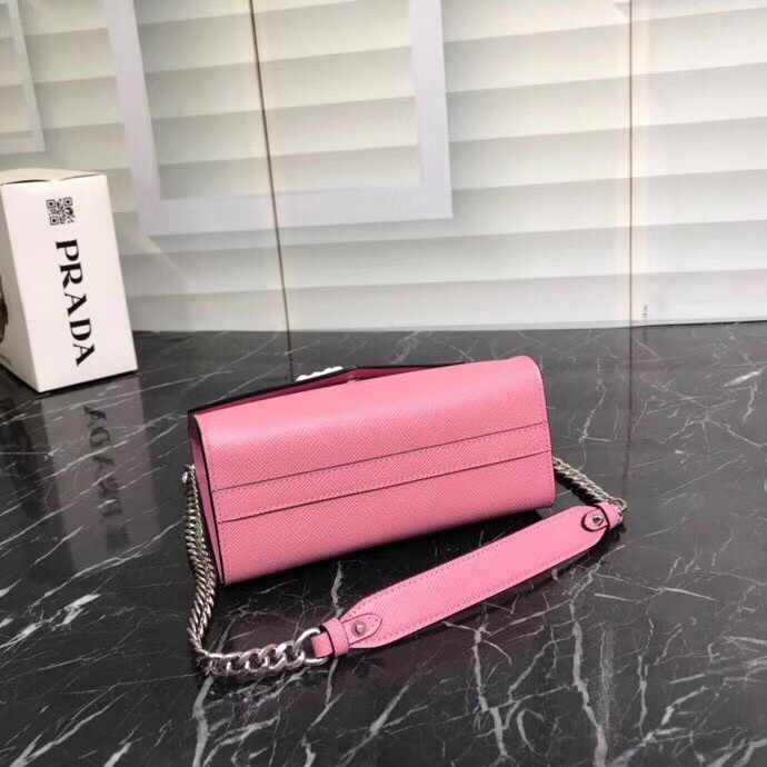 Prada Monochrome Flap Bag In Begonia Pink Saffiano Leather
