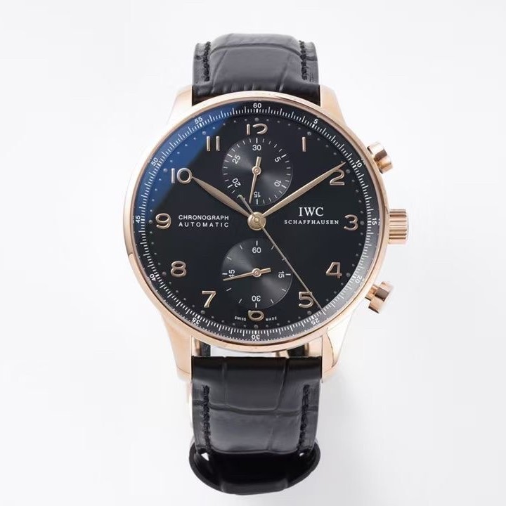 REPLICA IWC PORTUGIESER LEATHER STRAP STAINLESS STEEL ROSE GOLD CASE