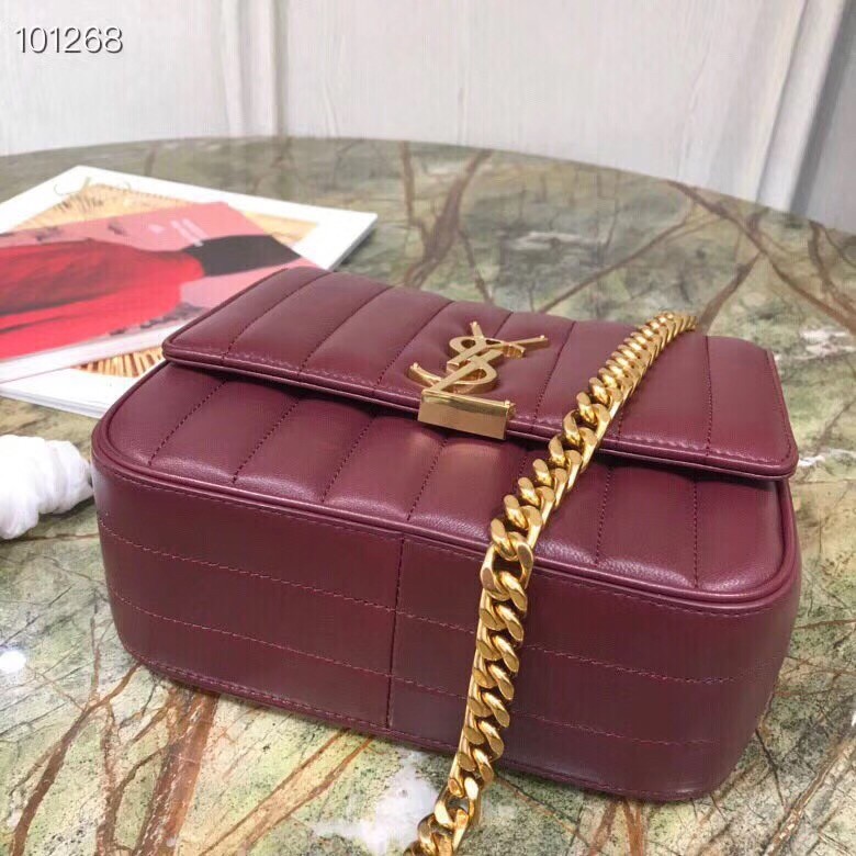 Saint Laurent Bolso Vicky Mediano En Piel De Cordero Burdeos