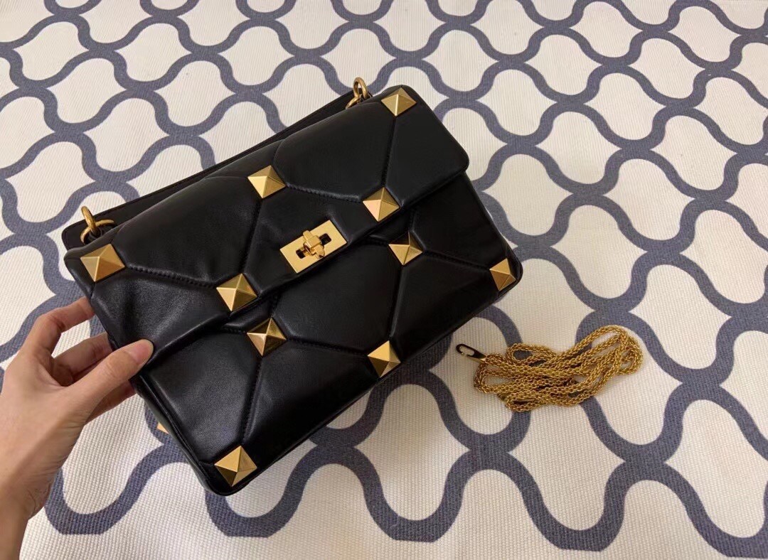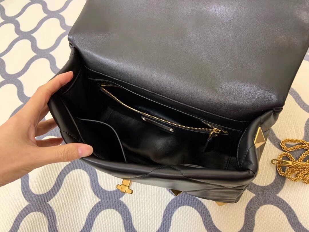 Sé el primero en opinar "Valentino Roman Stud Chain Bag In Black Lambskin"