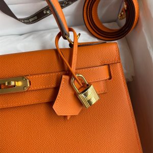 Hermes Kelly Sellier 28 Handmade Bag In Orange Epsom Calfskin