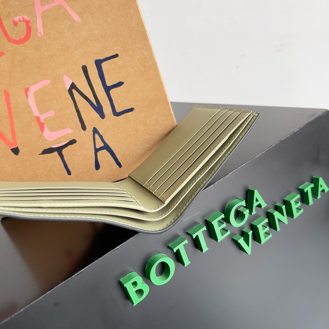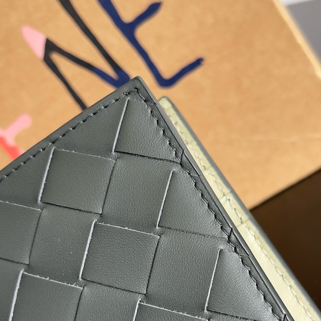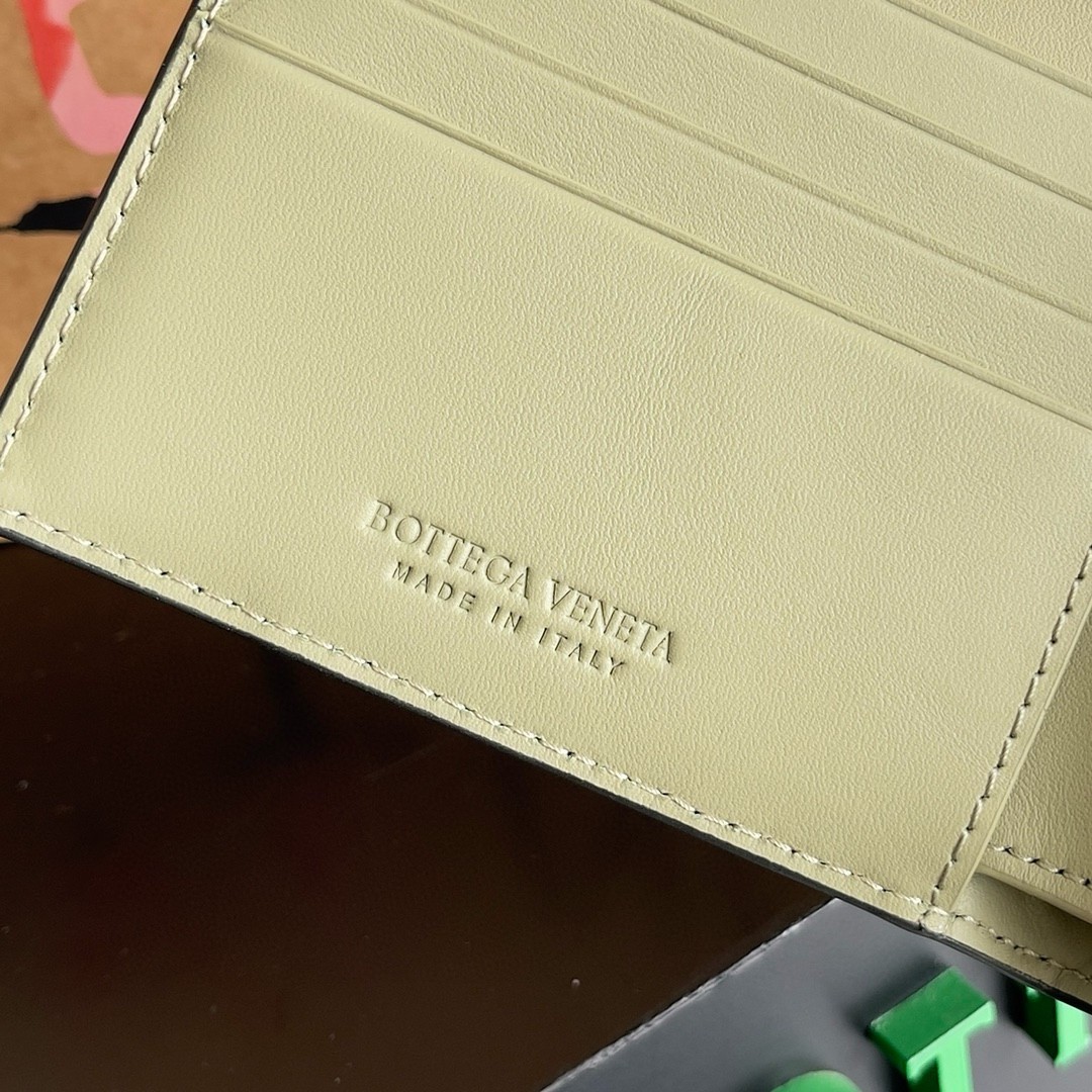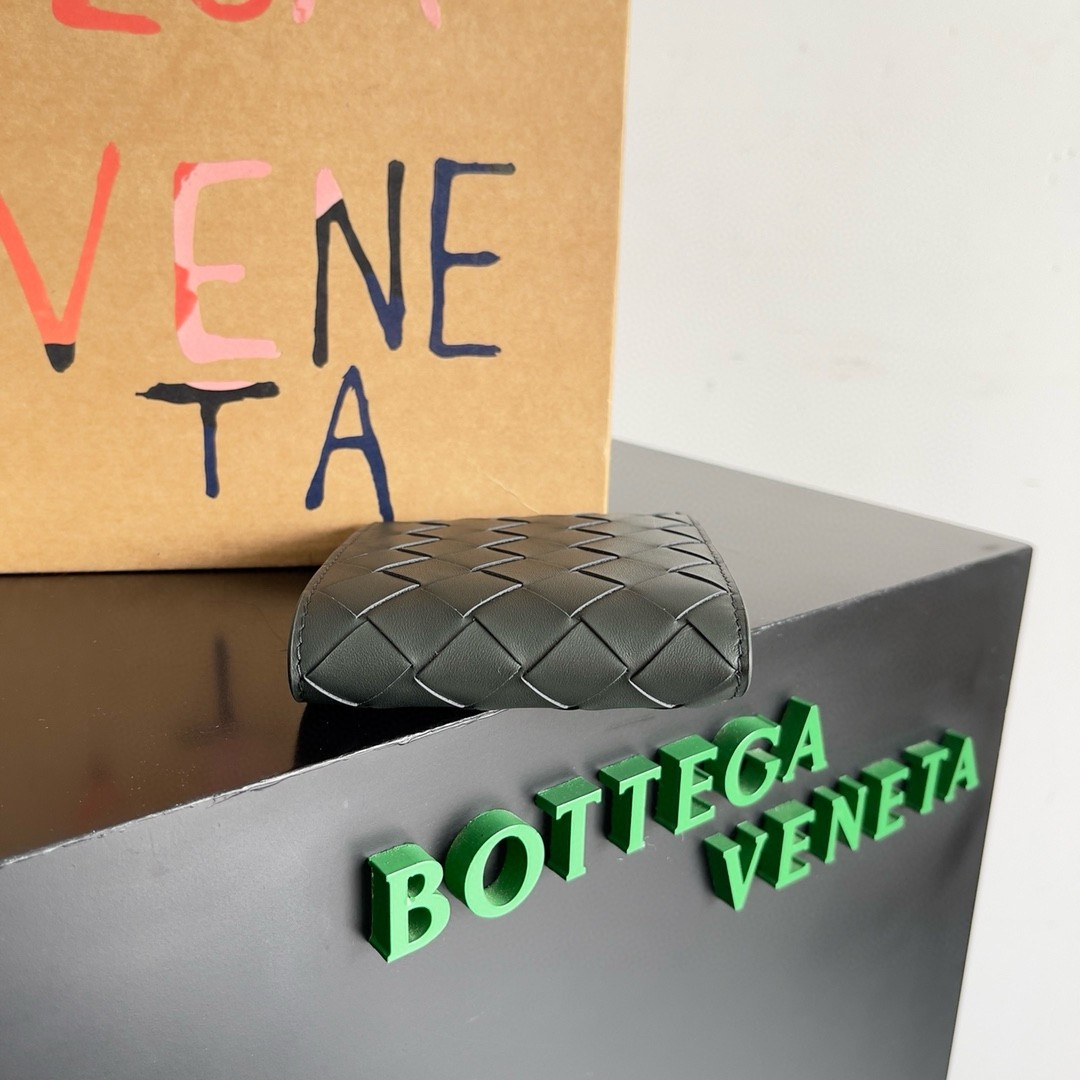 Portefeuille bi-fold Bottega Veneta en cuir Intrecciato vert foncé