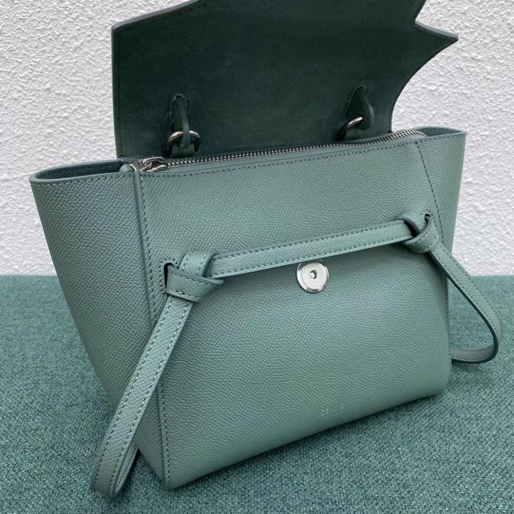 Sac Celine Belt Nano en cuir de veau grainé céladon