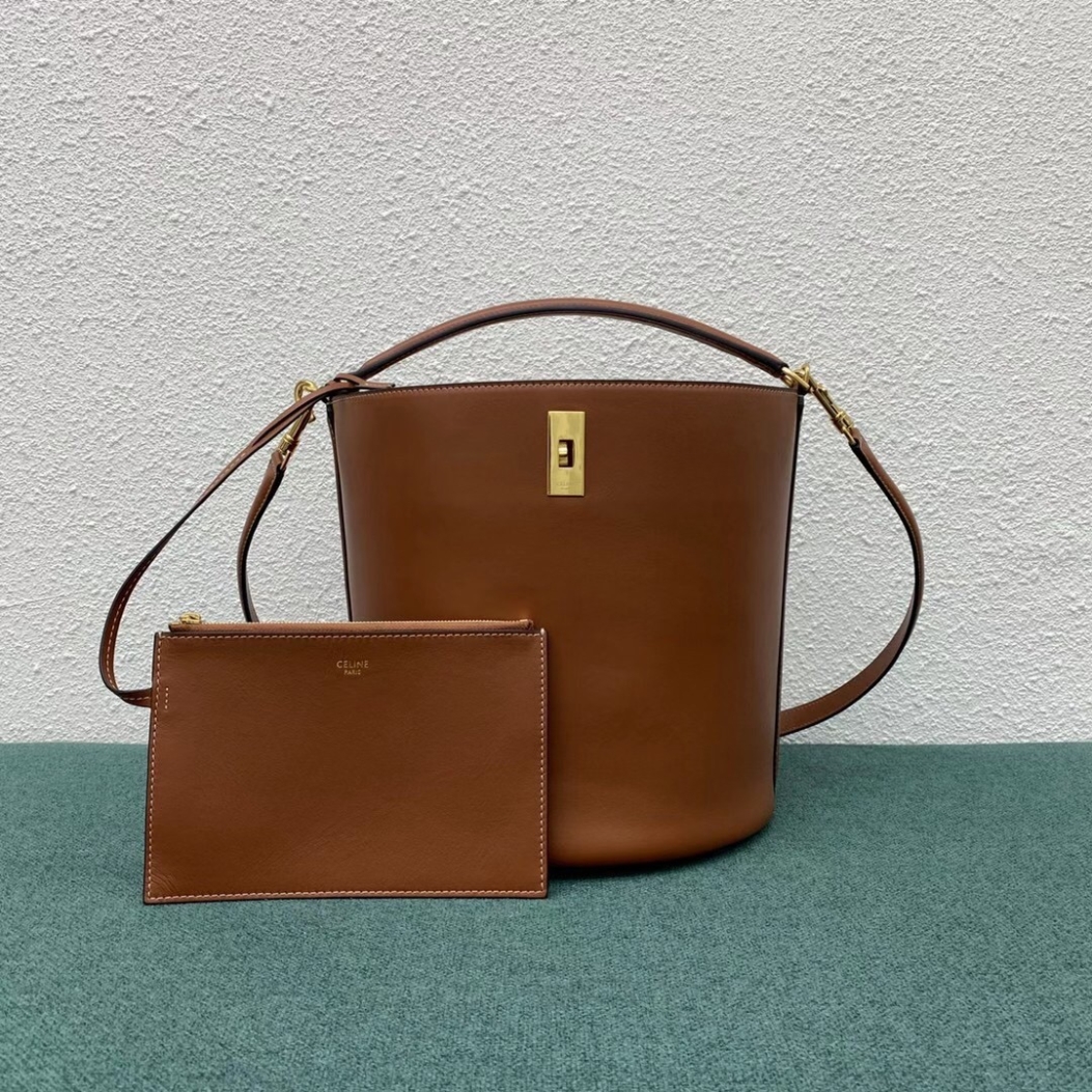 Sac Celine Bucket 16 en cuir de veau lisse marron