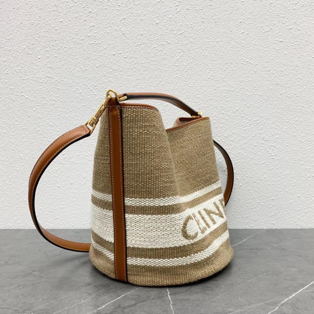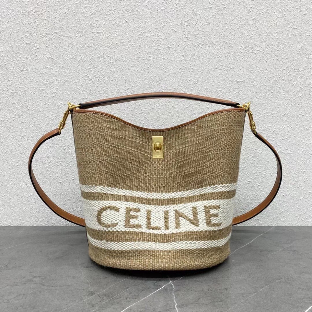 Aside from the now-iconic Celine 16 turnlock, the Bucket bares little resemblance to the original structured shape, allowing this new silhouette to speak to consumers who may not be original fans of the 16 line. Combining the elegance of textile with Celine Logo and smooth calfskin. Celine’s 16 bucket bag is a resolutely contemporary creation.