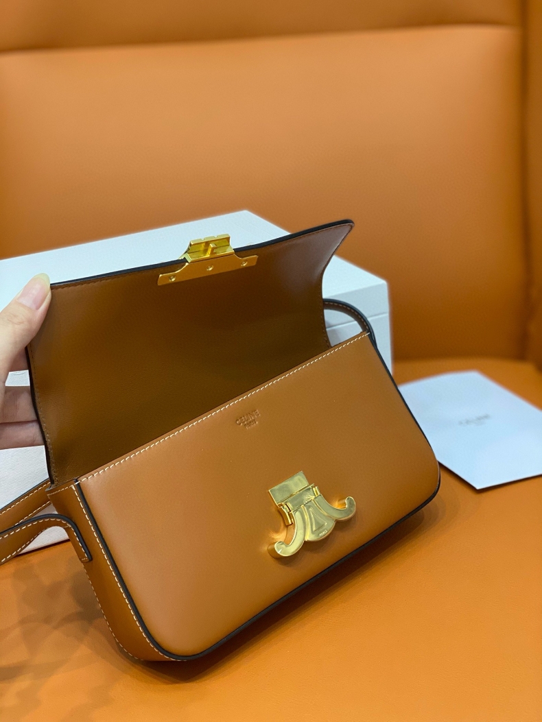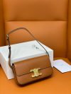 Celine Claude Shoulder bag is crafted from calfskin leather. It features an adjustable leather shoulder strap with luxurious gold hardware and a matching press lock on the crossover flap. Inside, you’ll discover a matching leather interior with a convenient patch pocket.