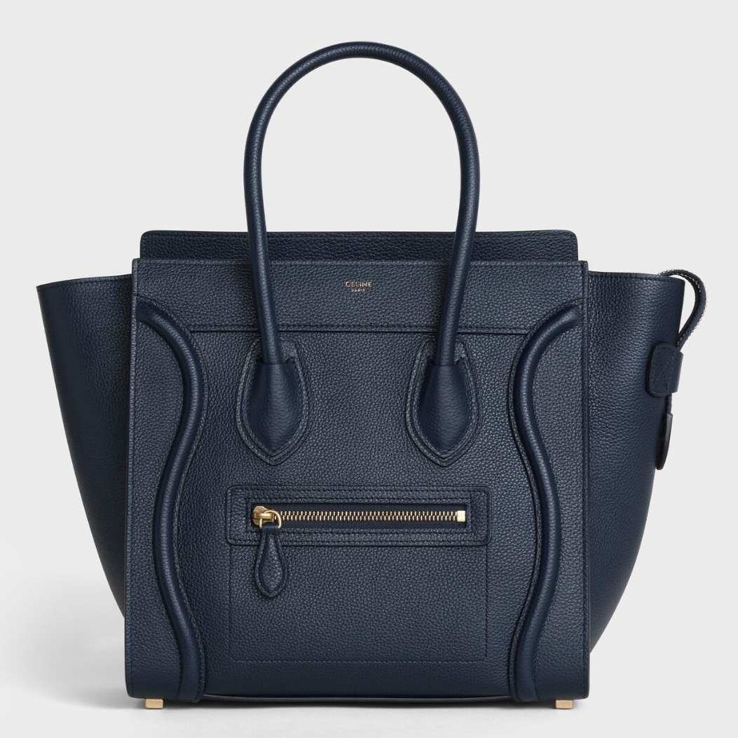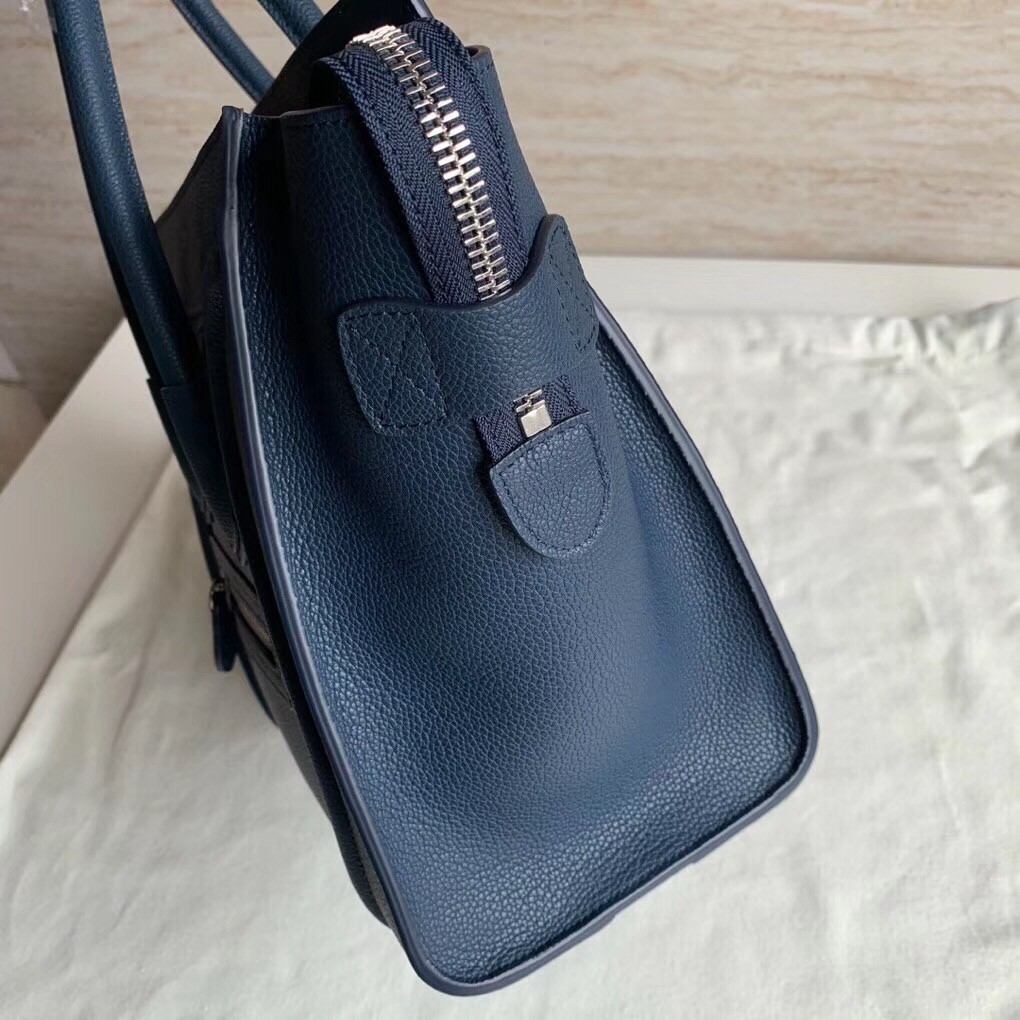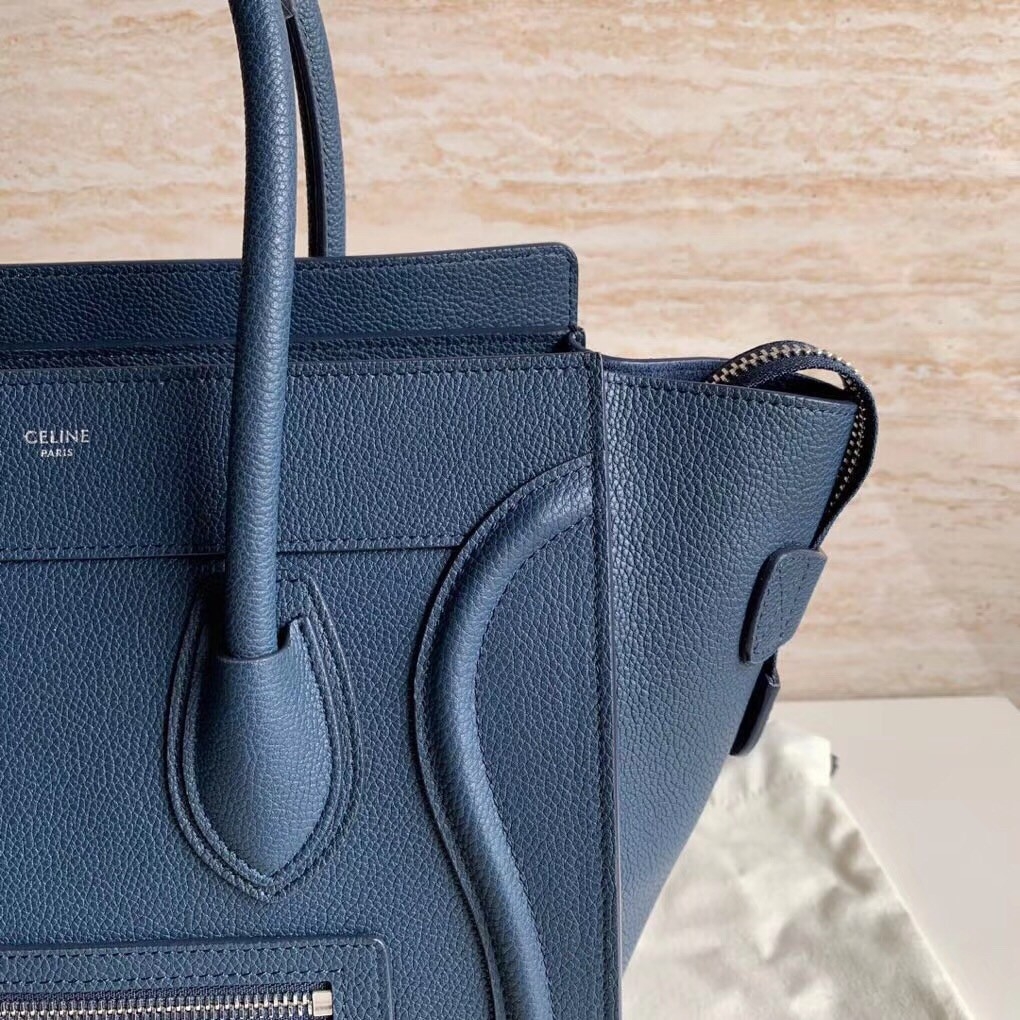 Celine Micro Luggage Tote Bag In Navy Blue Drummed Calfskin