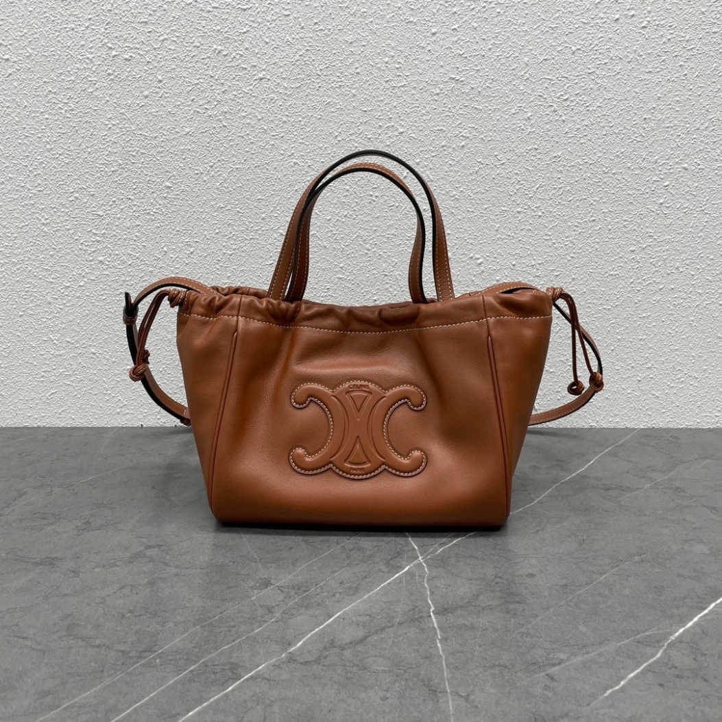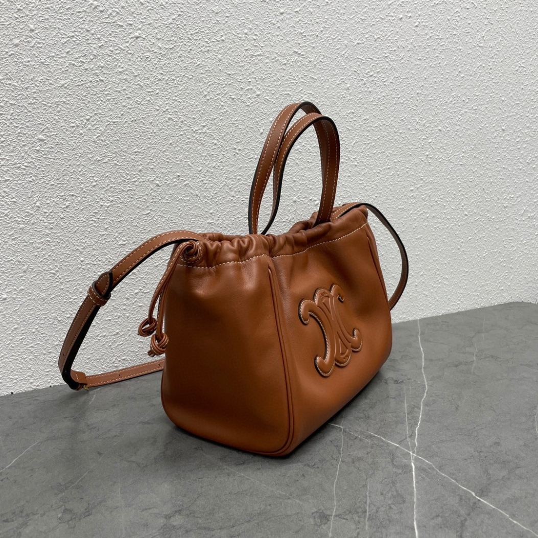 Celine - Petit sac Cabas à cordon de serrage Cuir Triomphe - Cuir de veau marron