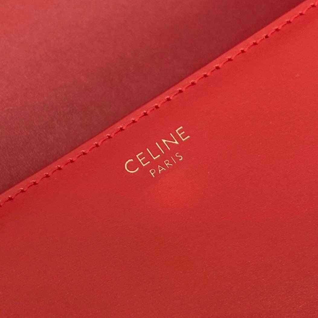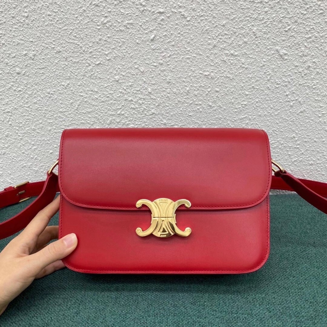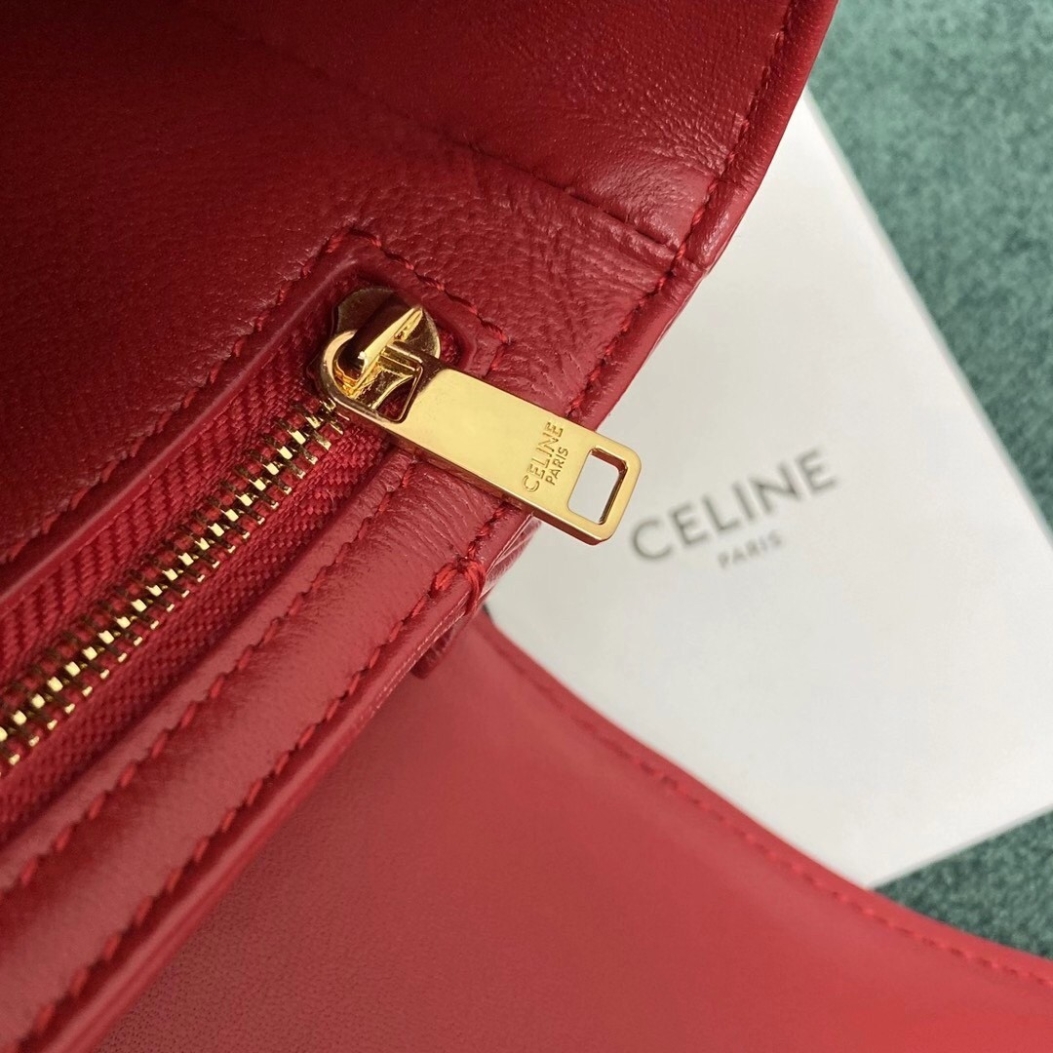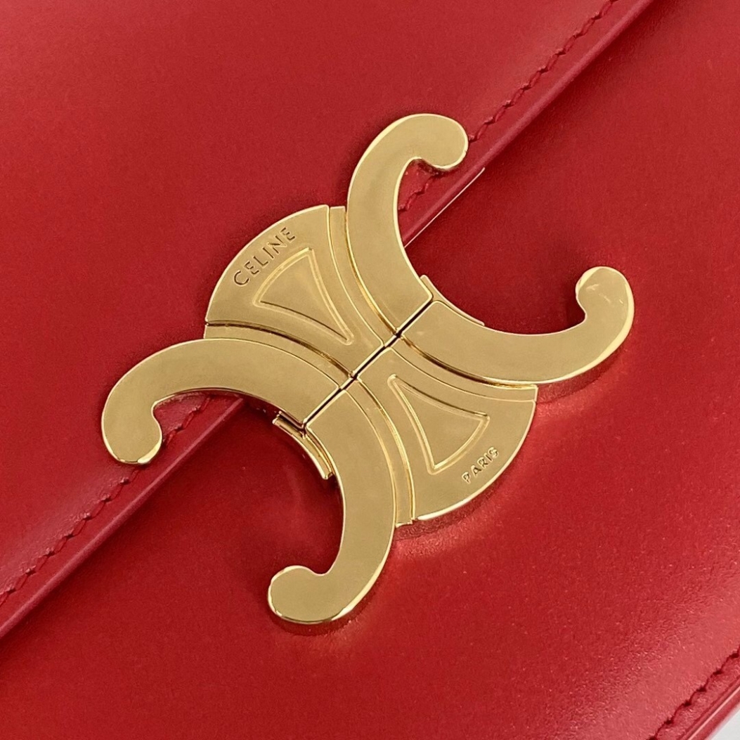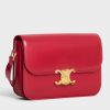Sac moyen Celine Triomphe en cuir de veau lisse rouge