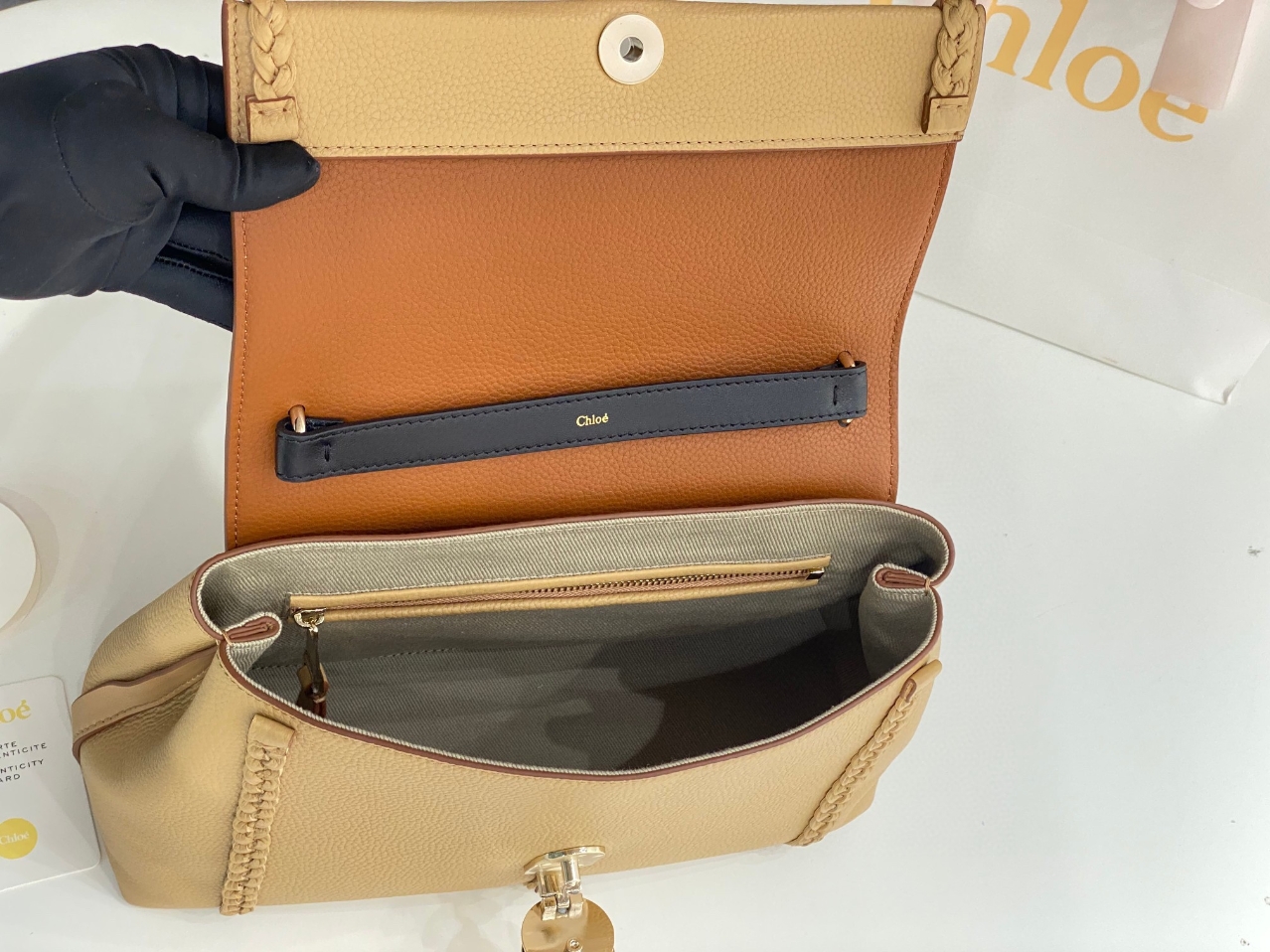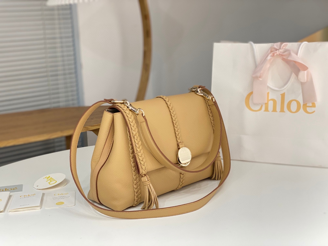 Sac à bandoulière moyen Chloe Penelope en cuir de veau grainé beige