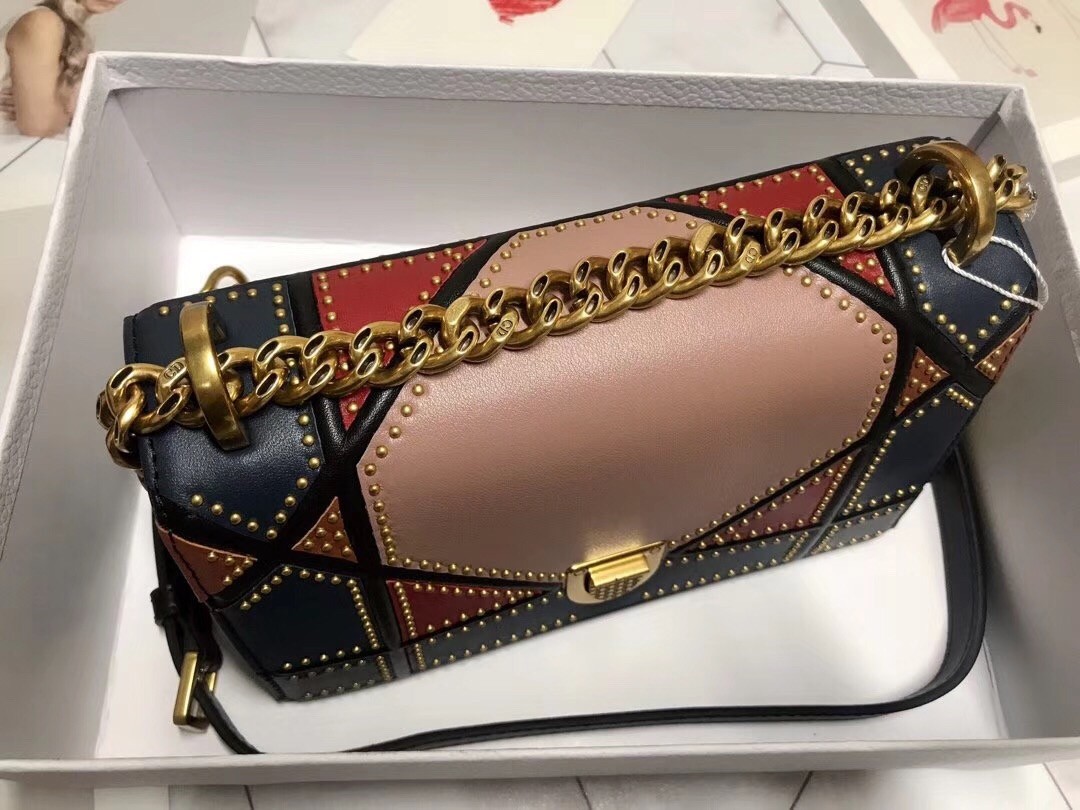 Built with the iconic crest-shape, refined with large ‘Cannage’ design. This Diorama bag is made from studded lambskin with patchwork. It is perfect for holding your girly essentials.