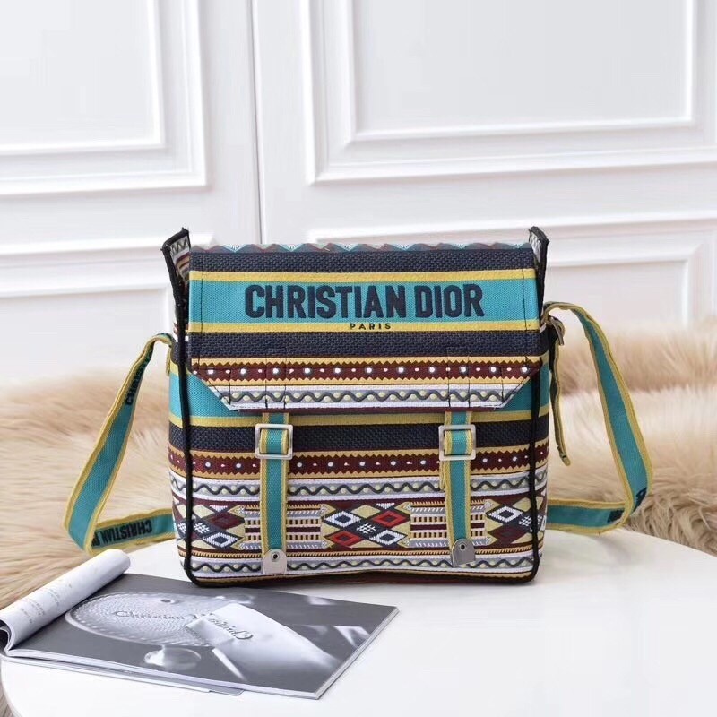 Dior Diorcamp Messenger Bag In Turquoise Embroidered Canvas
