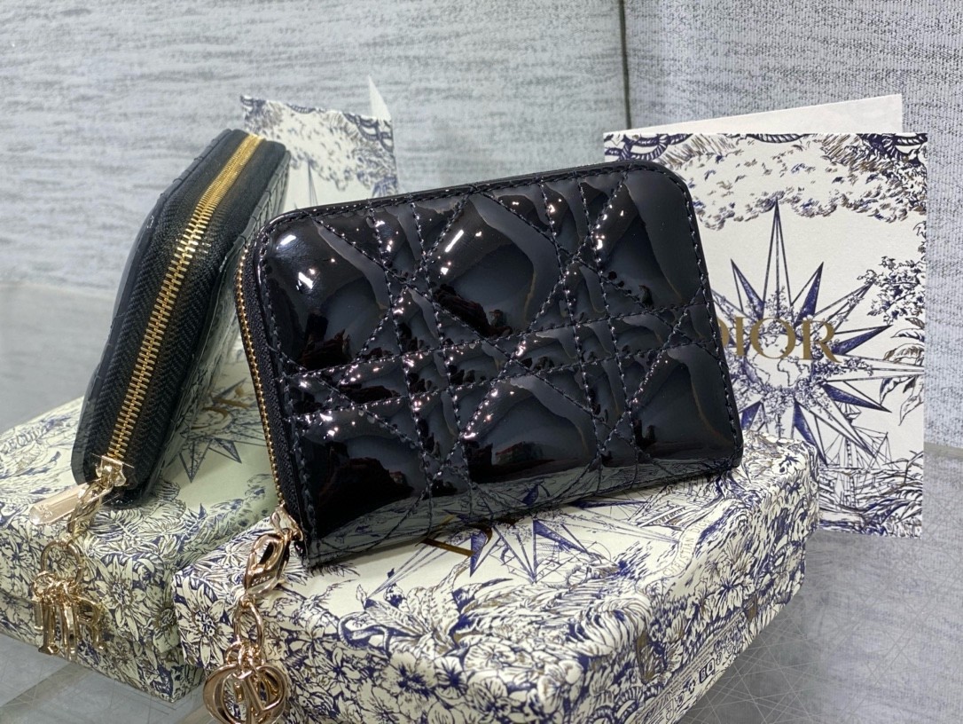 Porte-monnaie Lady Dior Voyageur en cuir verni noir