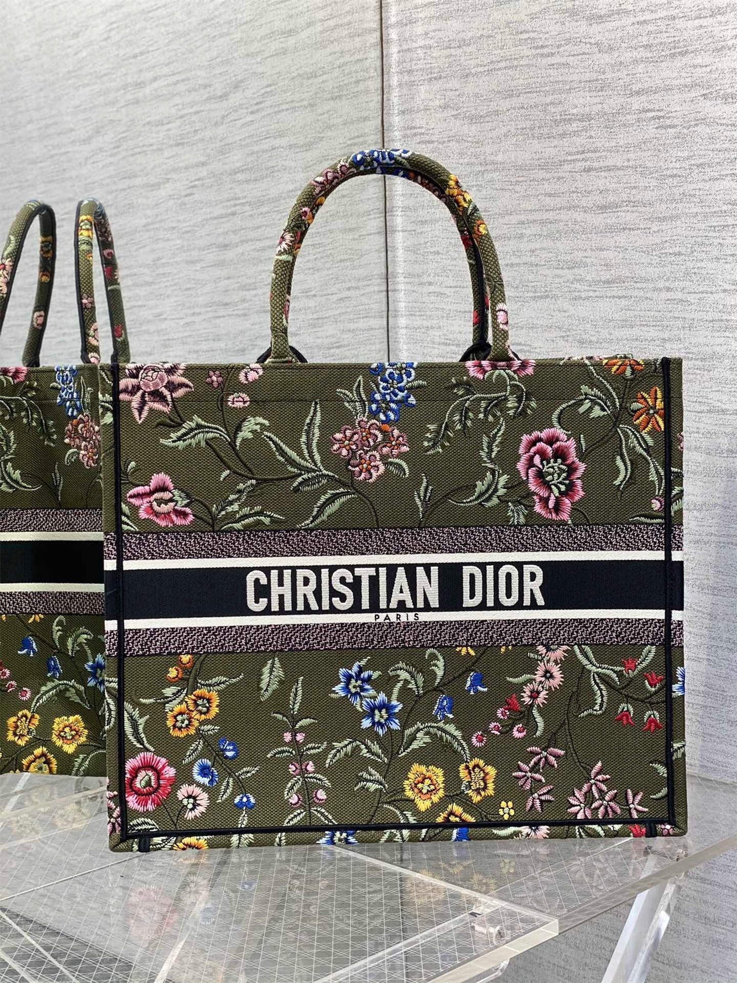 Soyez le premier à commenter "Dior Large Book Tote Bag In Green Dior Petites Fleurs Embroidery"