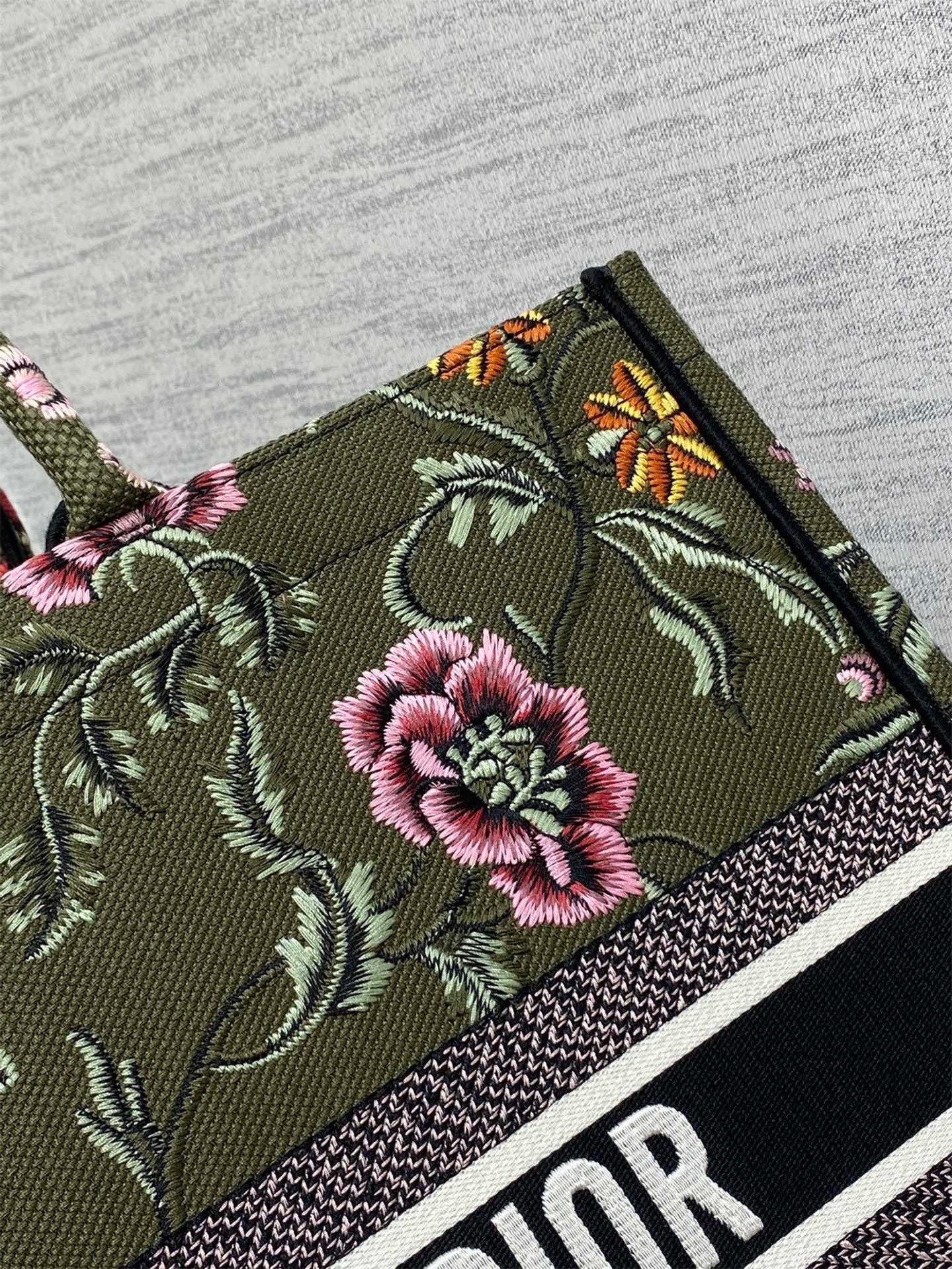 Dior Large Book Tote Bag In Green Dior Petites Fleurs Embroidery