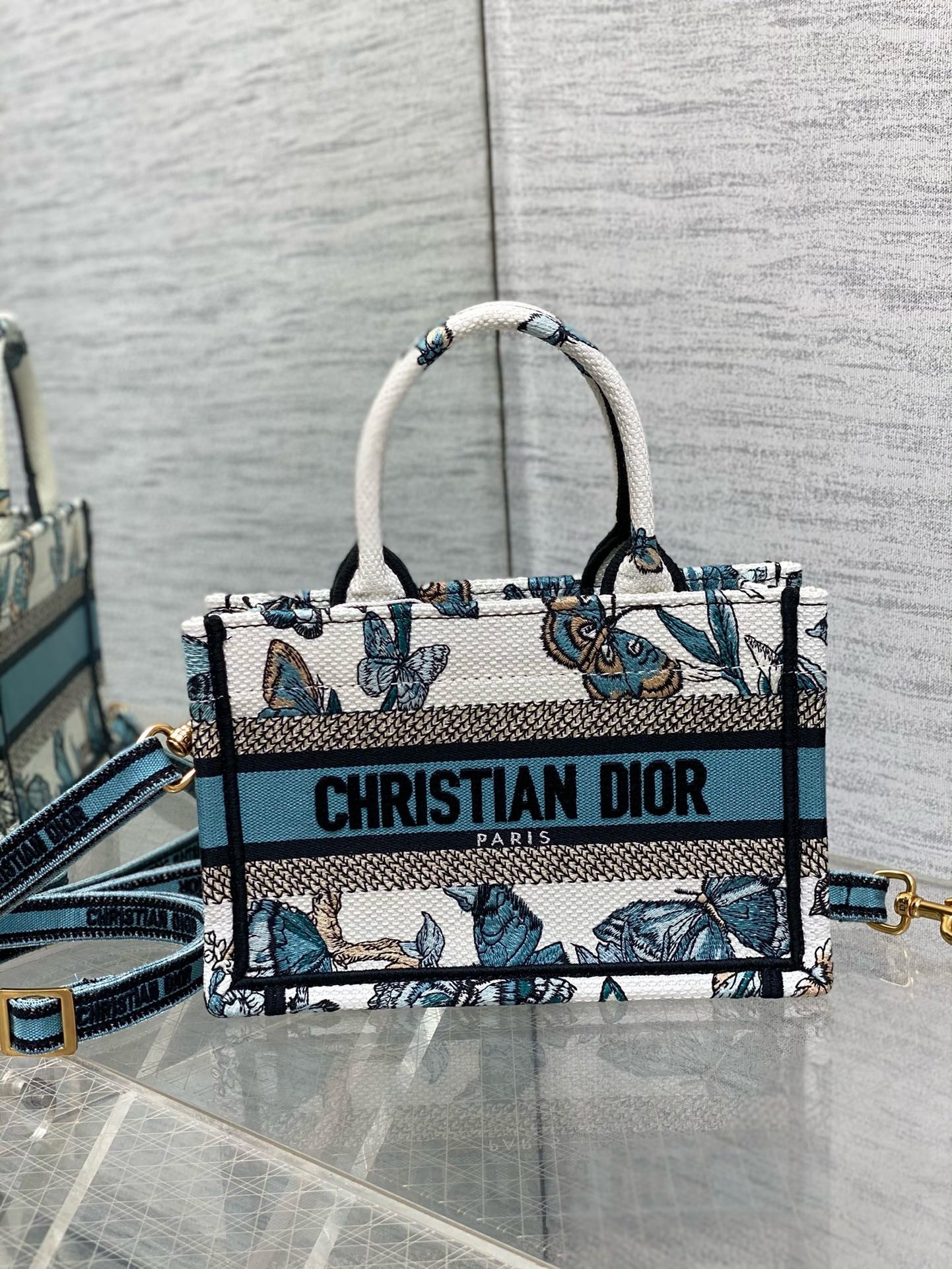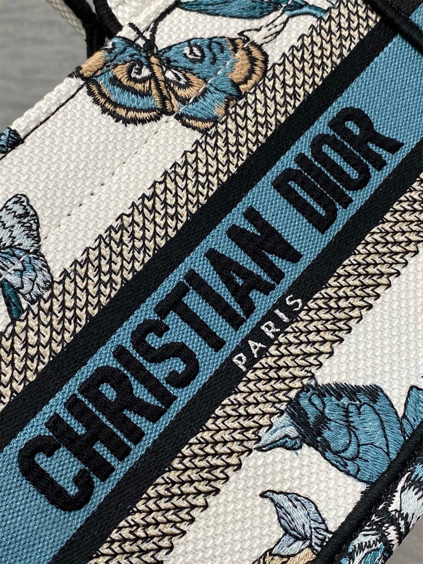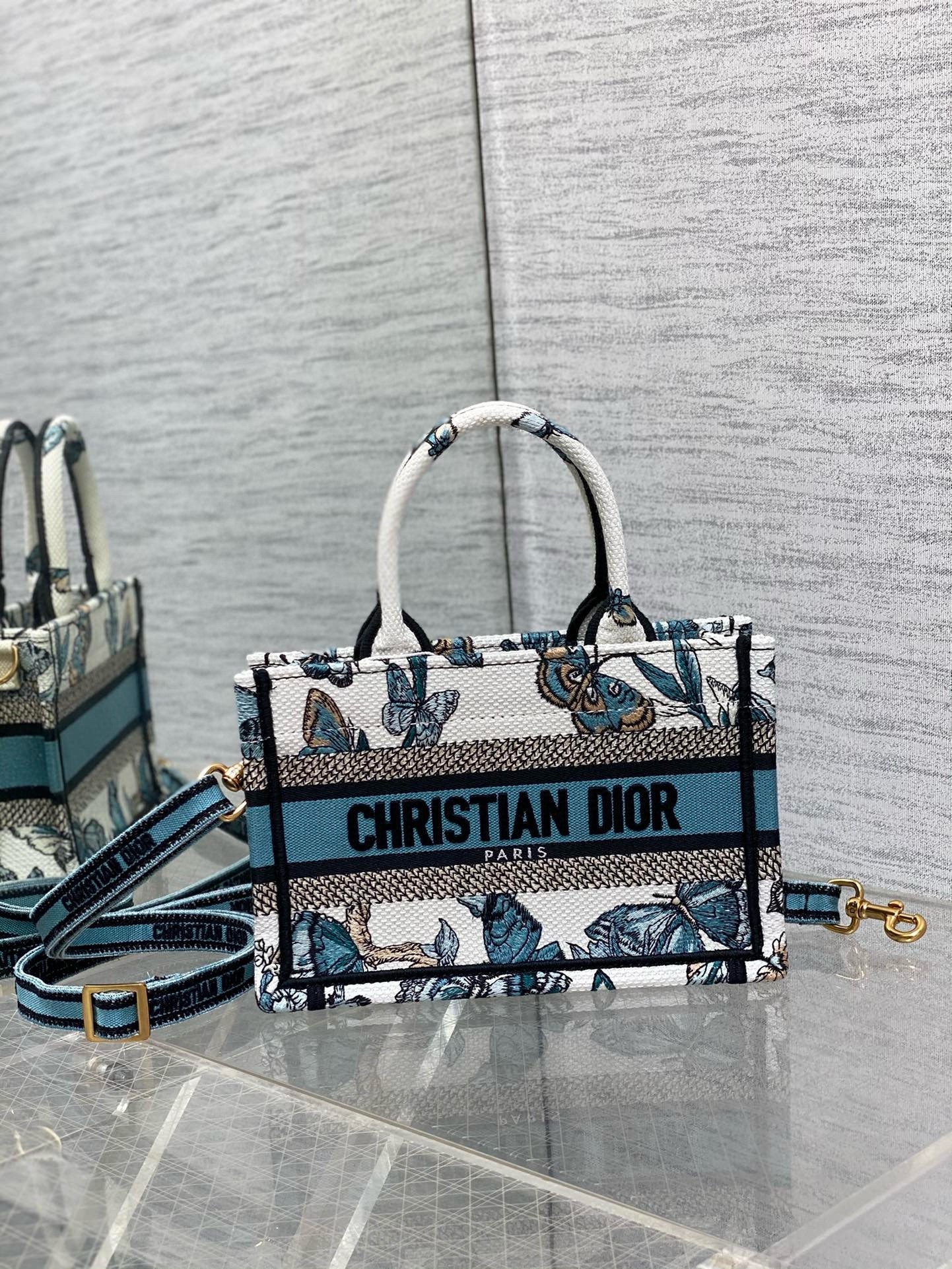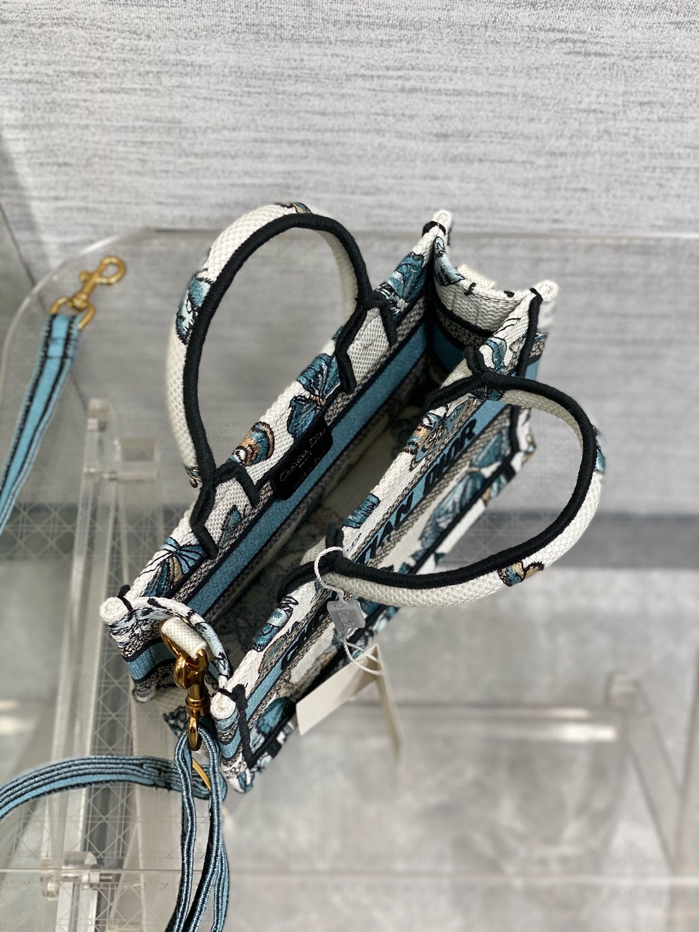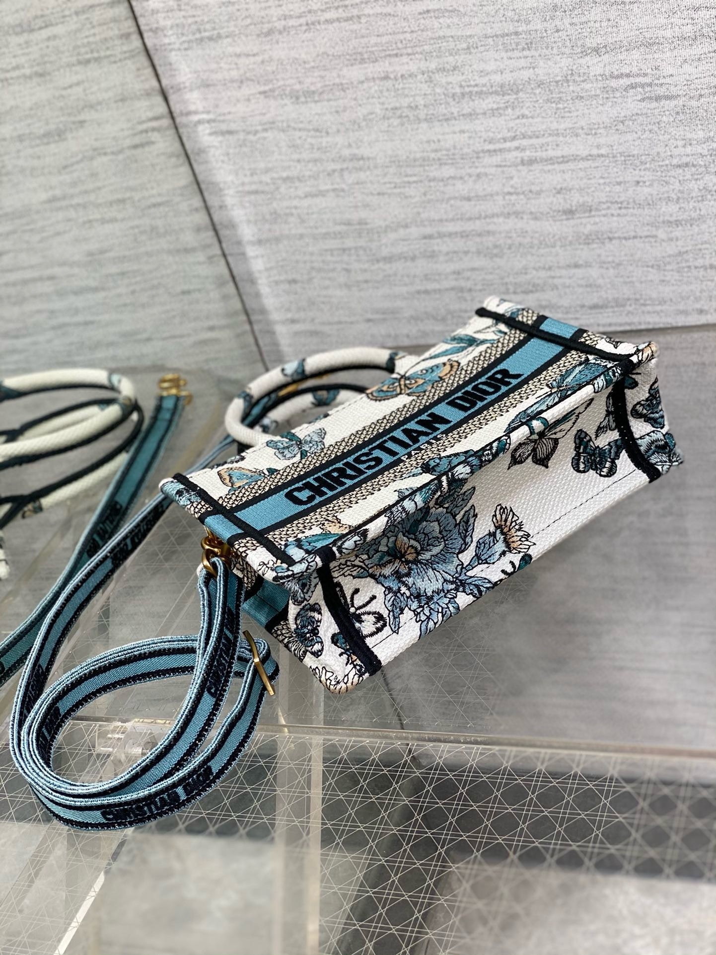 Dior Mini Book Tote with Strap in Blue Toile de Jouy Mexico Embroidery