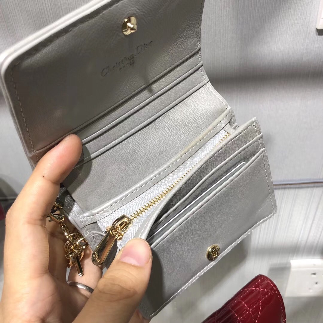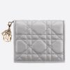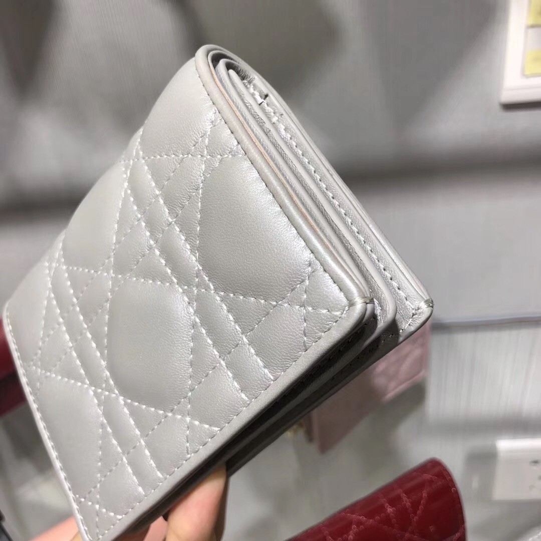 Portefeuille Dior Mini Lady Dior en cuir d'agneau nacré gris opale